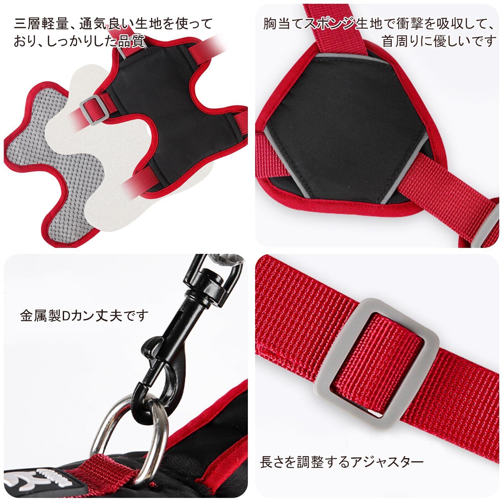 【首に優しい、抜けないデザイン】六つ調整ポイントと四つのクイックリリースバックルで作られて、王の字型のデザインで絶対抜けない同時に、愛犬の体型をフェットして調整できて、ストレッチスペースを確保もでき、首に優しい、負担かけない、イージーウォークの犬ハーネスです。愛犬の散歩、トレーニング、アウトドア、探検中には最適で、人気、おしゃれの犬ハーネスです。