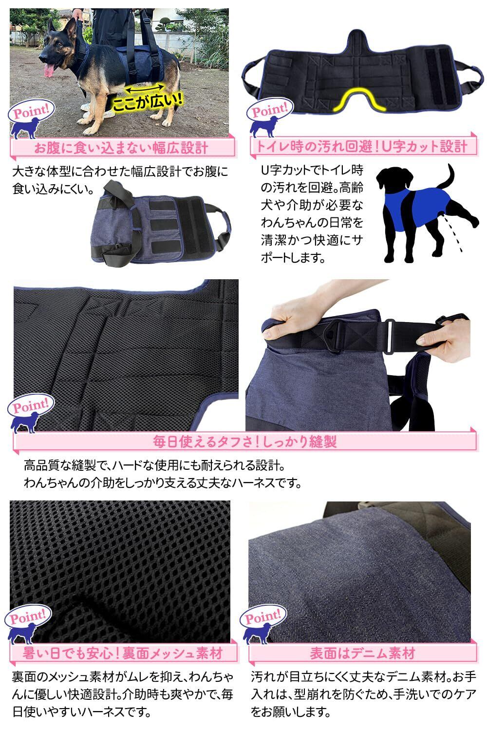 【トイレを手助けU字カット構造!!】 ハーネスにU字カットが施されているので、トイレ時の汚れを回避!! ワンちゃんの生活を清潔かつ快適にサポートします