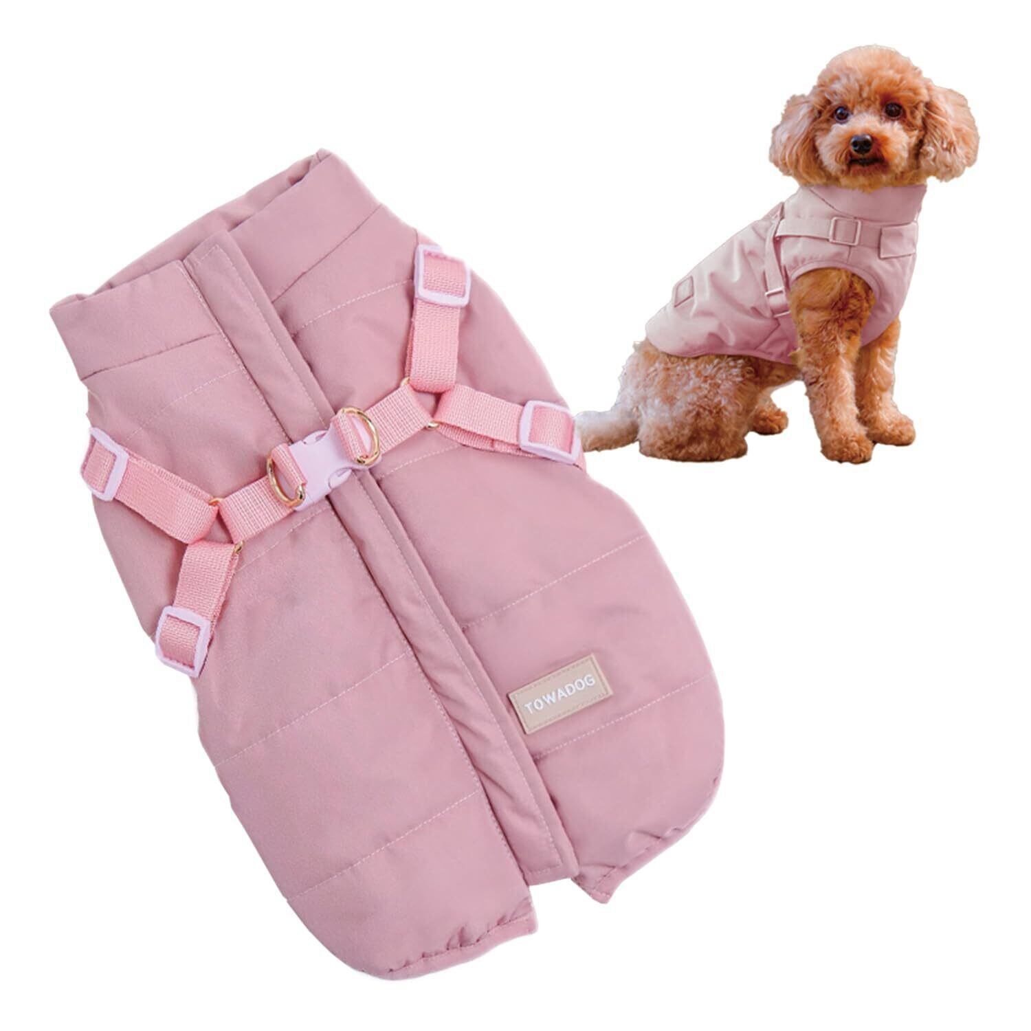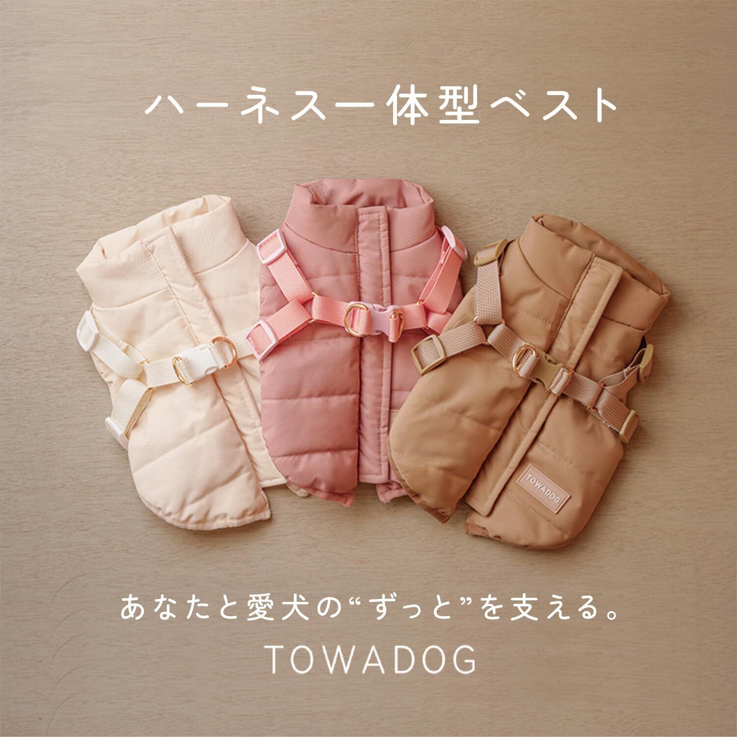 TOWADOG【ハーネス一体型で着脱簡単】 犬 服 ハーネス ドッグウェア 犬の服 犬服 秋冬 小型犬 中型犬 大型犬 背中 ファスナー 背中開き ダウン ベスト (ダスティピンク, M)