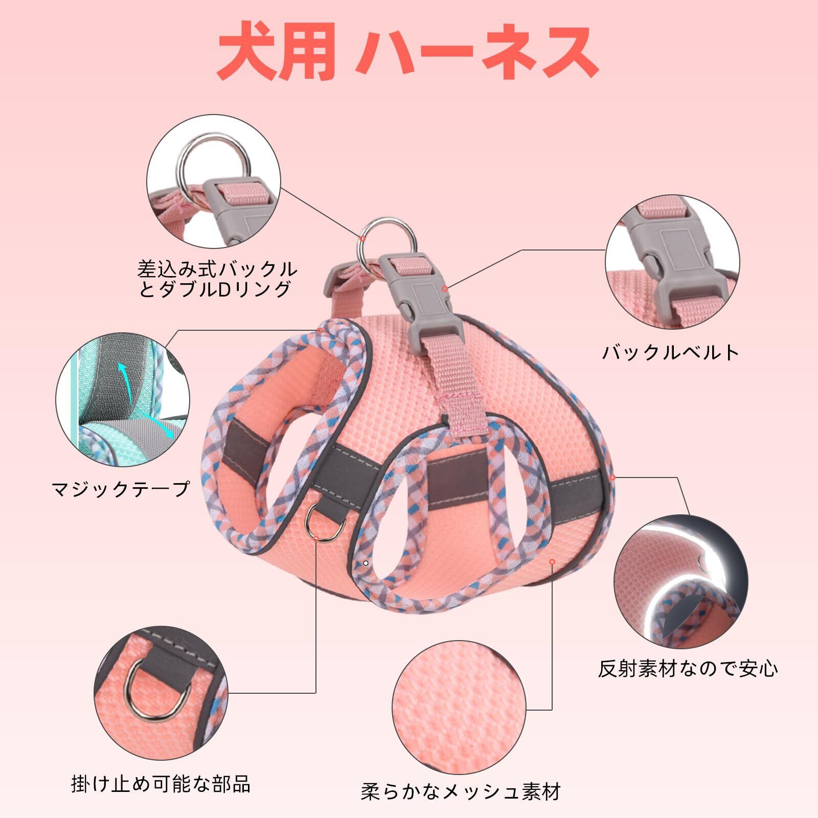 犬 ハーネス リードセット 負担が少ない 軽量 通気 犬用ハーネス小型犬 猫ハーネス首輪 胴輪 簡単着脱 抜けない 犬はーねす小型 3MTM反射素材付属 マジックテープ 超小型犬 中型犬 調節可能 ペット用品 引っ張り防止 着脱簡単 老犬 歩行補助 散歩用 夏用 人気 メッシュ おしゃれ チェック柄 (S, ピンク)