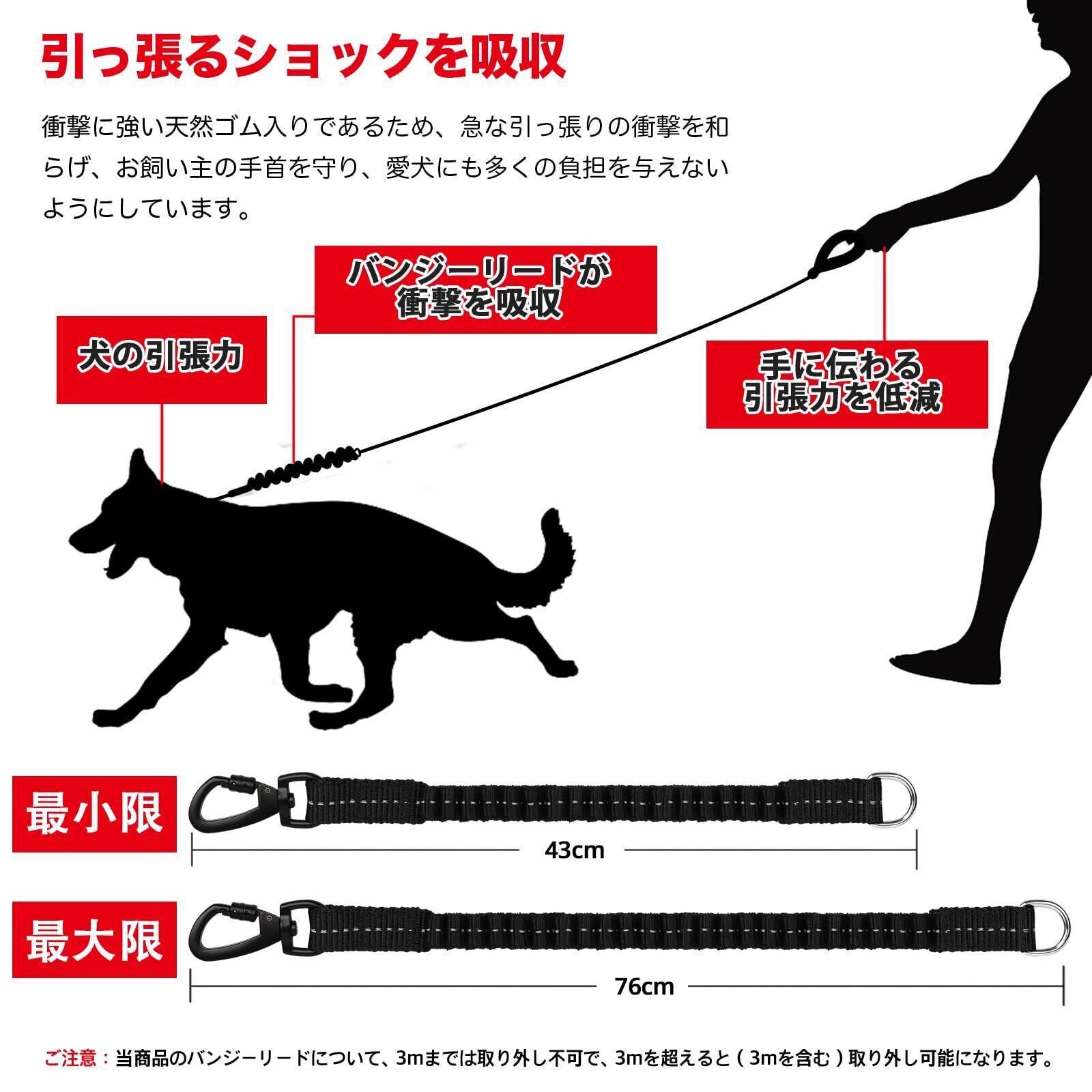 【弾力伸縮リード付き】DANOFY犬リードは、衝撃に強い天然ゴム入りの伸縮バンジーリードがついているため、急な引っ張りの衝撃を和らげ、お飼い主の手首を守り、愛犬にも多くの負担を与えないようにしています。犬用ロングリードの本体は、登山用と同等の耐久性を持つ高強度ロープを採用され、耐衝撃性が一層にアップされます。ご注意:3m以下のリード 犬は、バンジーリードの取り外しが不可で、3m(含)以上の犬 ロングリードは、バンジーリードが取り外し可能です。ご都合に合わせてご選択いただけるようお願いします。