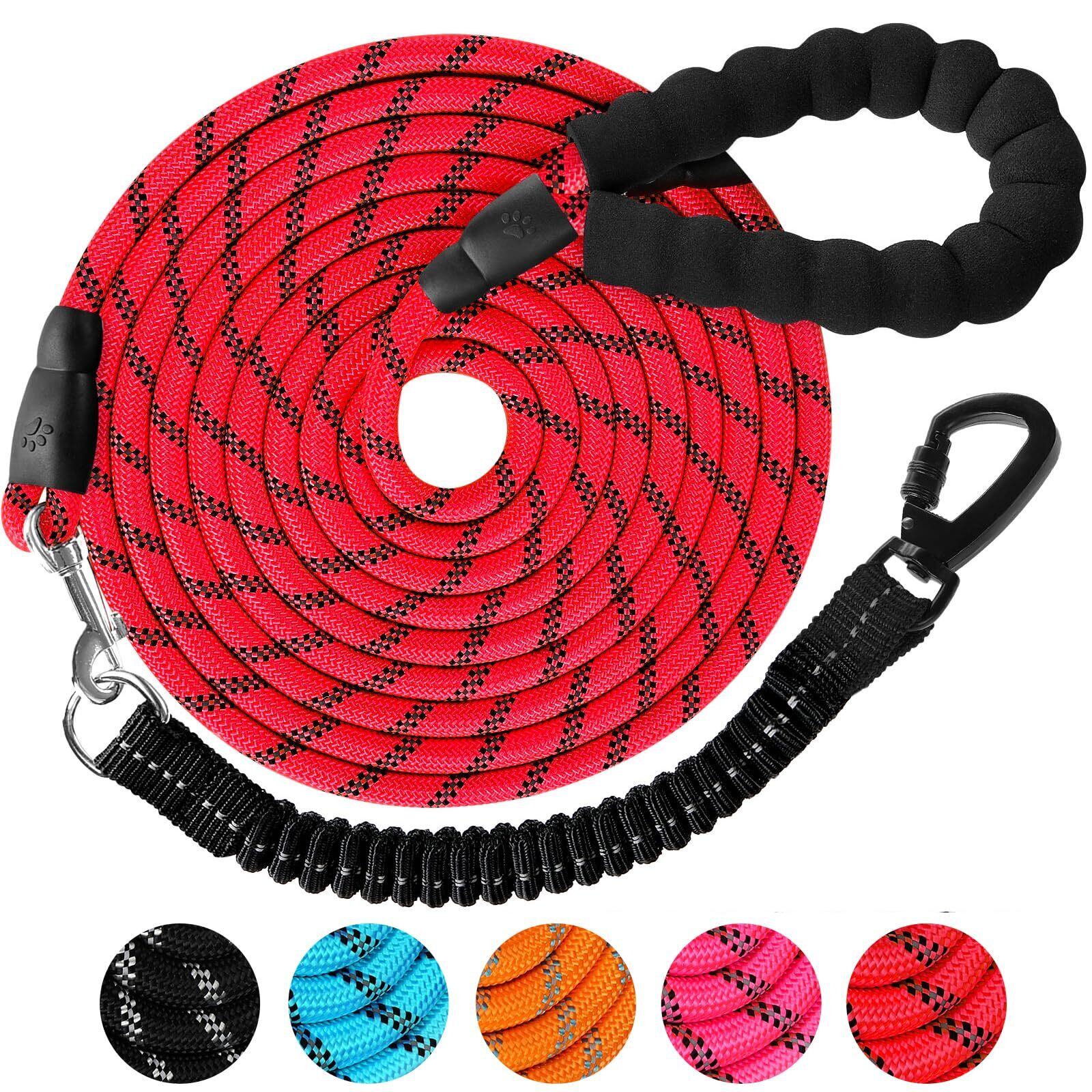 DANOFY 犬 リード ロングリード 犬用リード 15m - 長い丸ロープ 小型犬 中型犬 大型犬 反射 軽量 丈夫 持ちやすい スポンジハンドル 伸縮リード付き 犬用散歩ひも 訓練用リード 負担減軽 衝撃吸収 レッド
