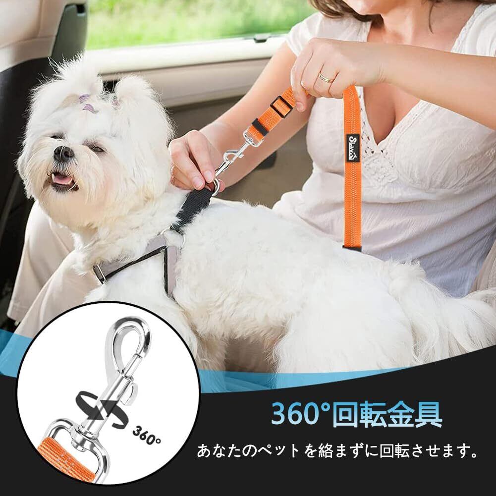【使い勝手】犬用シートベルトに360度フックを採用。取り外しが簡単な犬猫兼用シートベルトなので、飼い主も安心です。散歩用の導線も使えます。また、反射ベルトのデザインにより、犬が夜間に外出することもより安全になります。