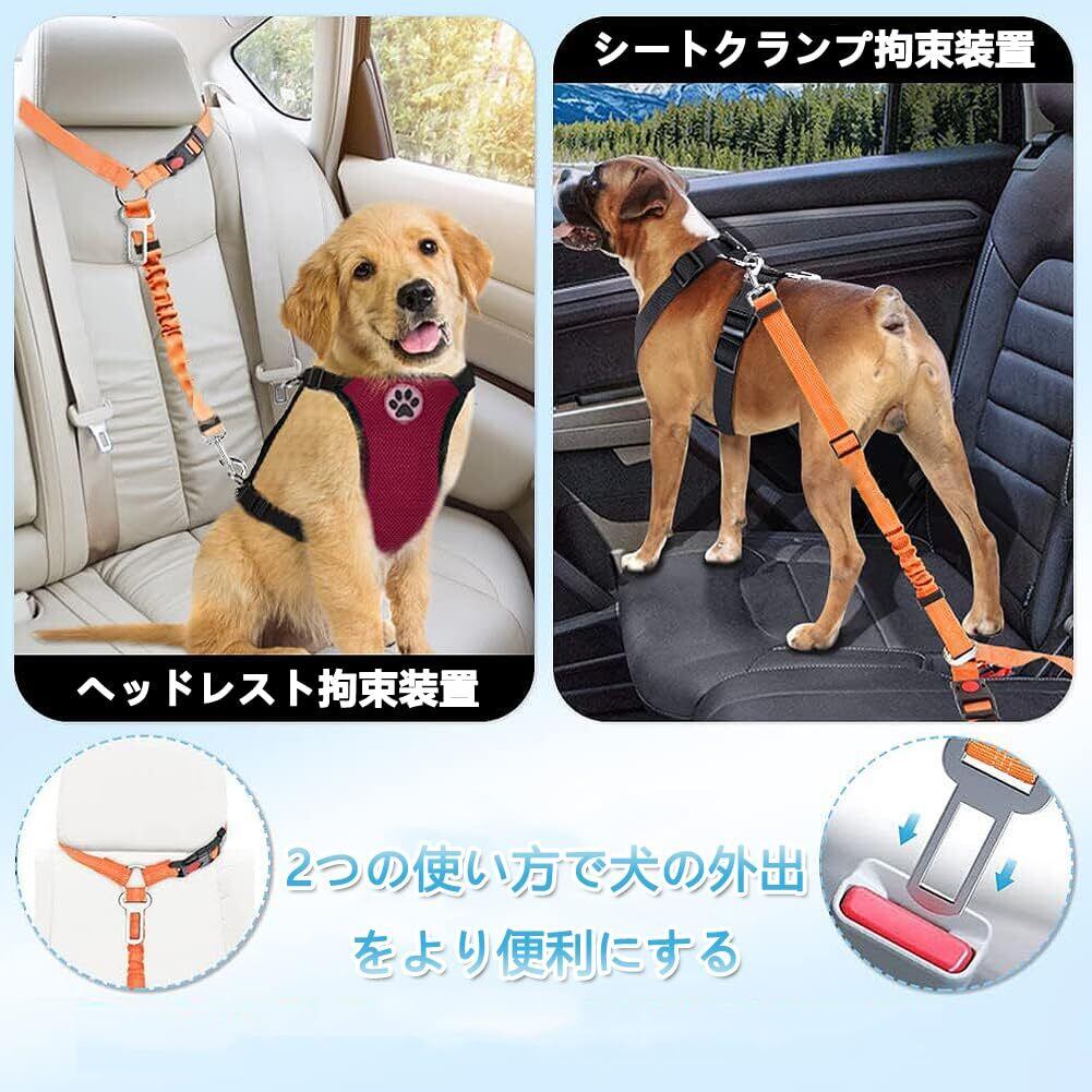 犬 シートベルト ペットシートベルト 車専用リード ドライブシートベルト 助手席 飛び出し防止 伸縮性あり 長さ調節可 犬用リード 犬用品