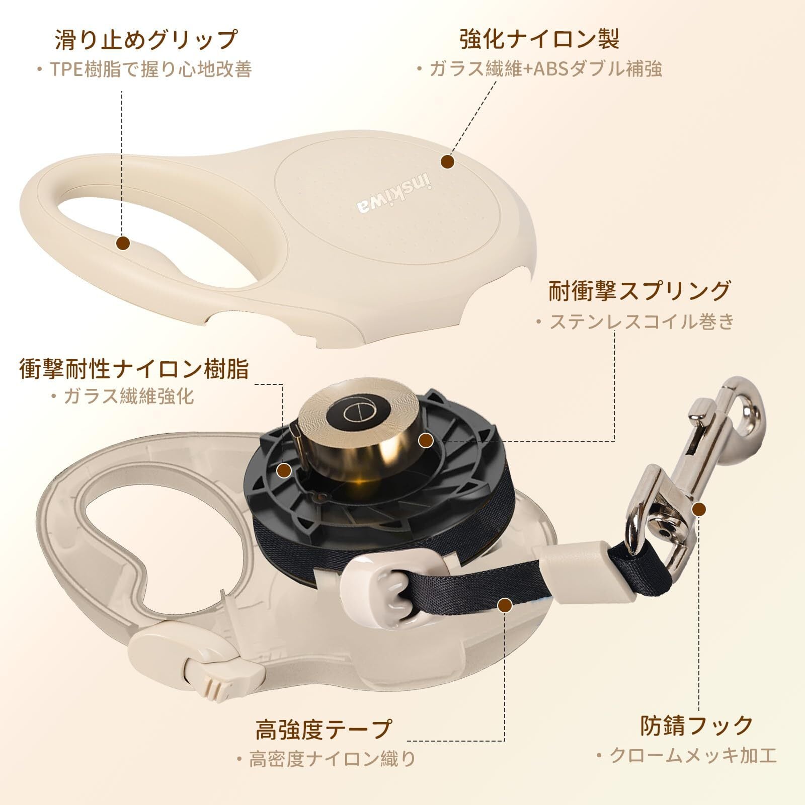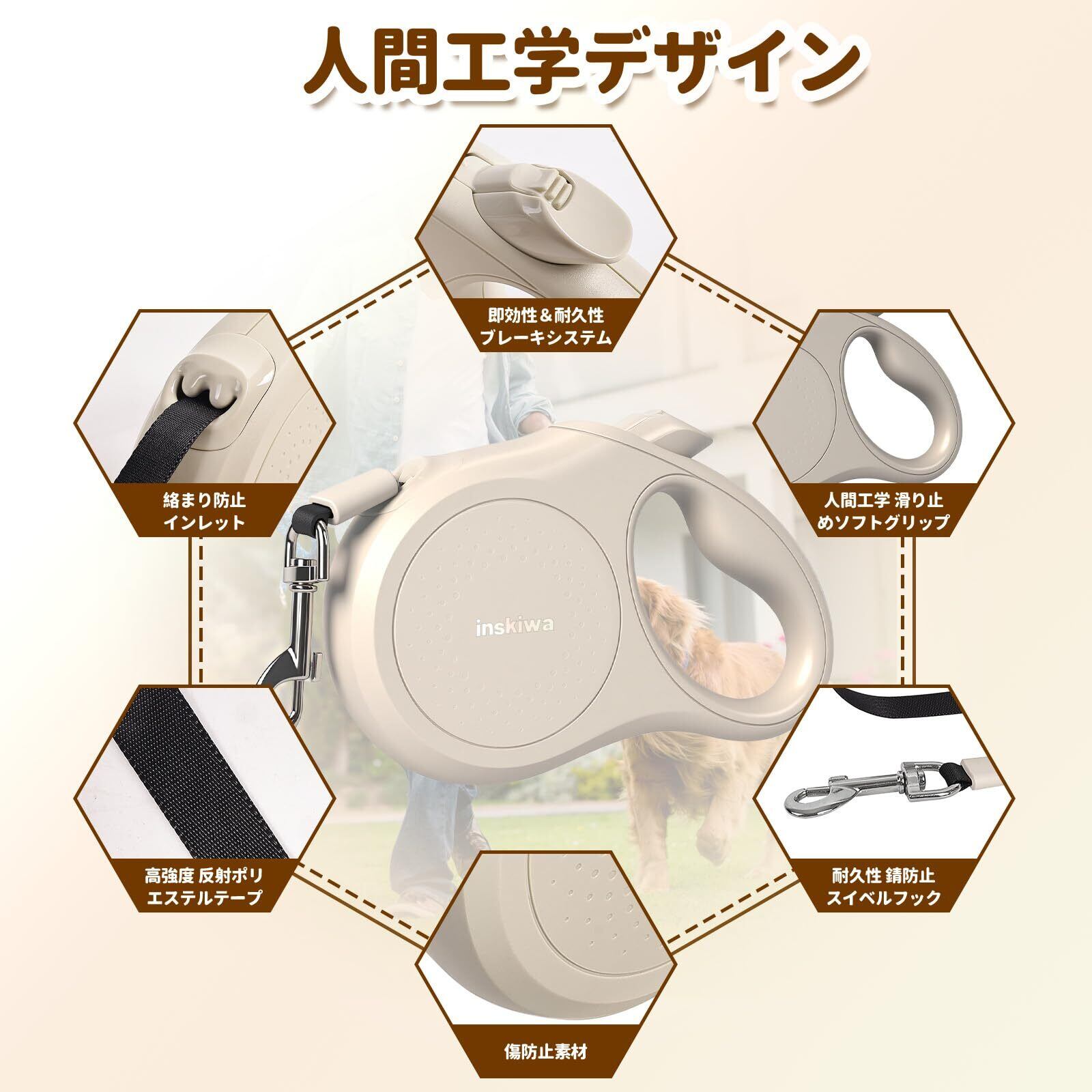 犬 リード 伸縮 ロングリード 自動巻き ストラップ付き リフレクター 小・中型犬用 [長さ:5m 適応体重30kg]