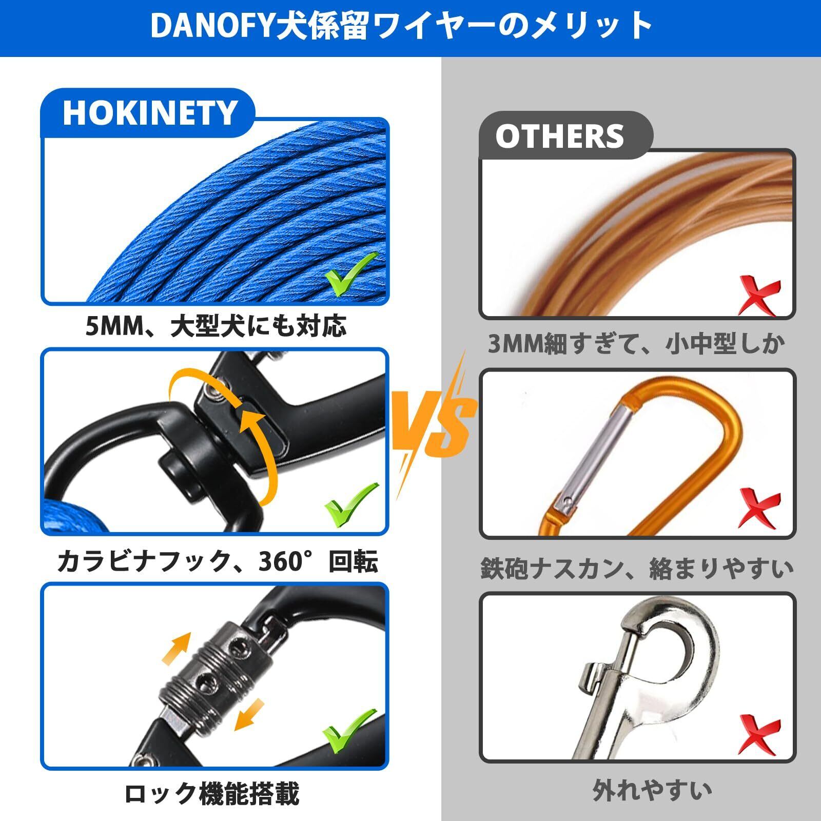 DANOFY 犬 ワイヤー 係留 リード ケーブル - 犬用 係留ケーブル 5mm極細 カラビナ ロック付き 錆び付かない ランナーケーブル しつけ用 訓練リード 外飼い 庭 キャンプ 小型犬 中型犬 大型犬対応 ブルー 4.5m