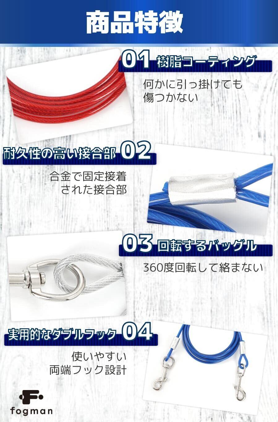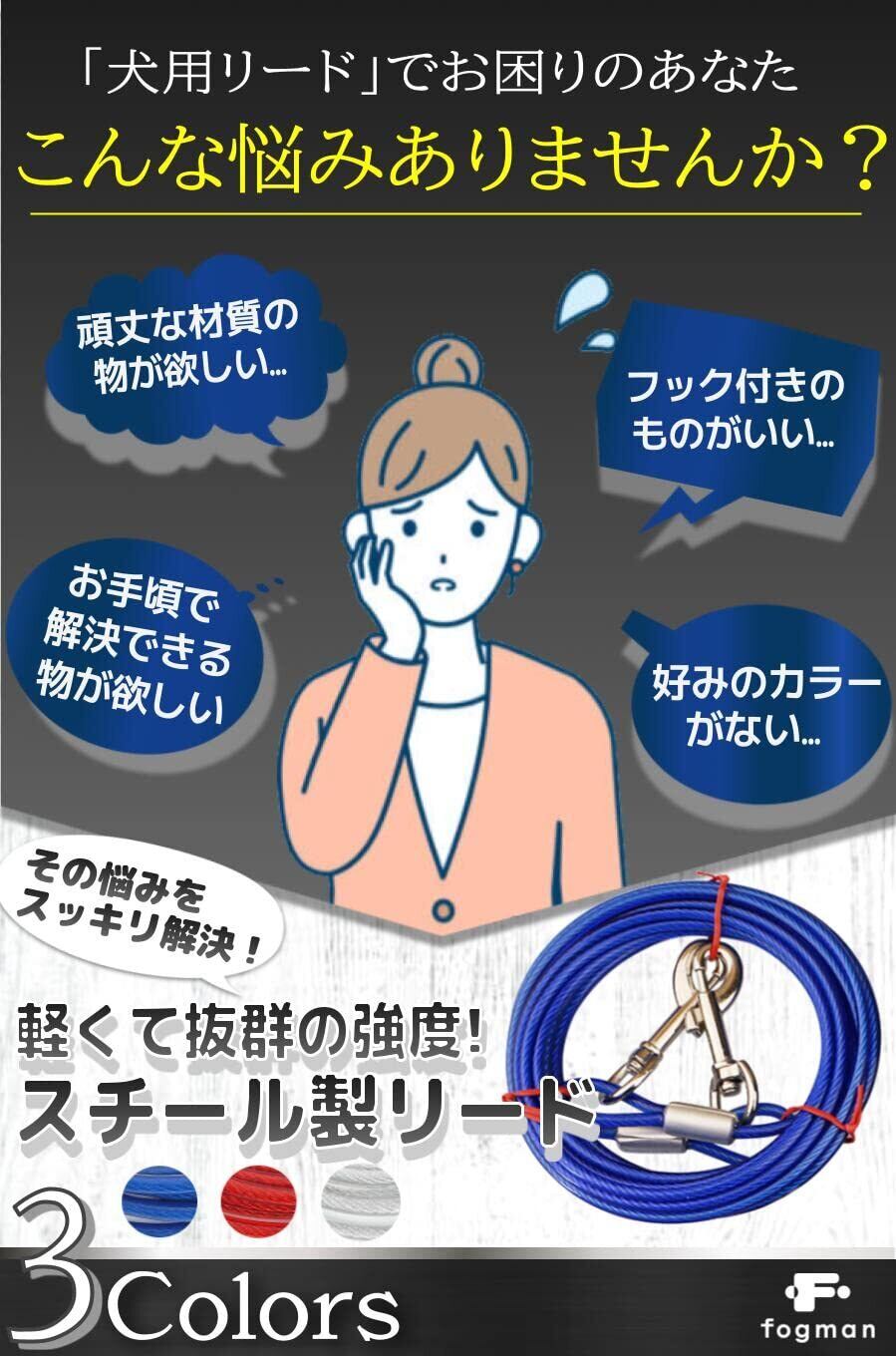 fogman ロングリード ワイヤー 係留 犬 ロープ ランナーケーブル ワイヤー太さ5mm (3m, レッド)