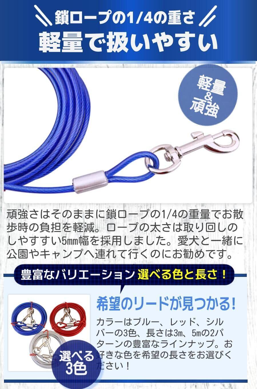 【豊富なバリエーション】 希望のリードが見つかる! カラーはブルー、レッド、シルバーの3色、長さは3m、5mの2パターンの豊富なラインナップ。お好きな色を希望の長さをお選びください!
