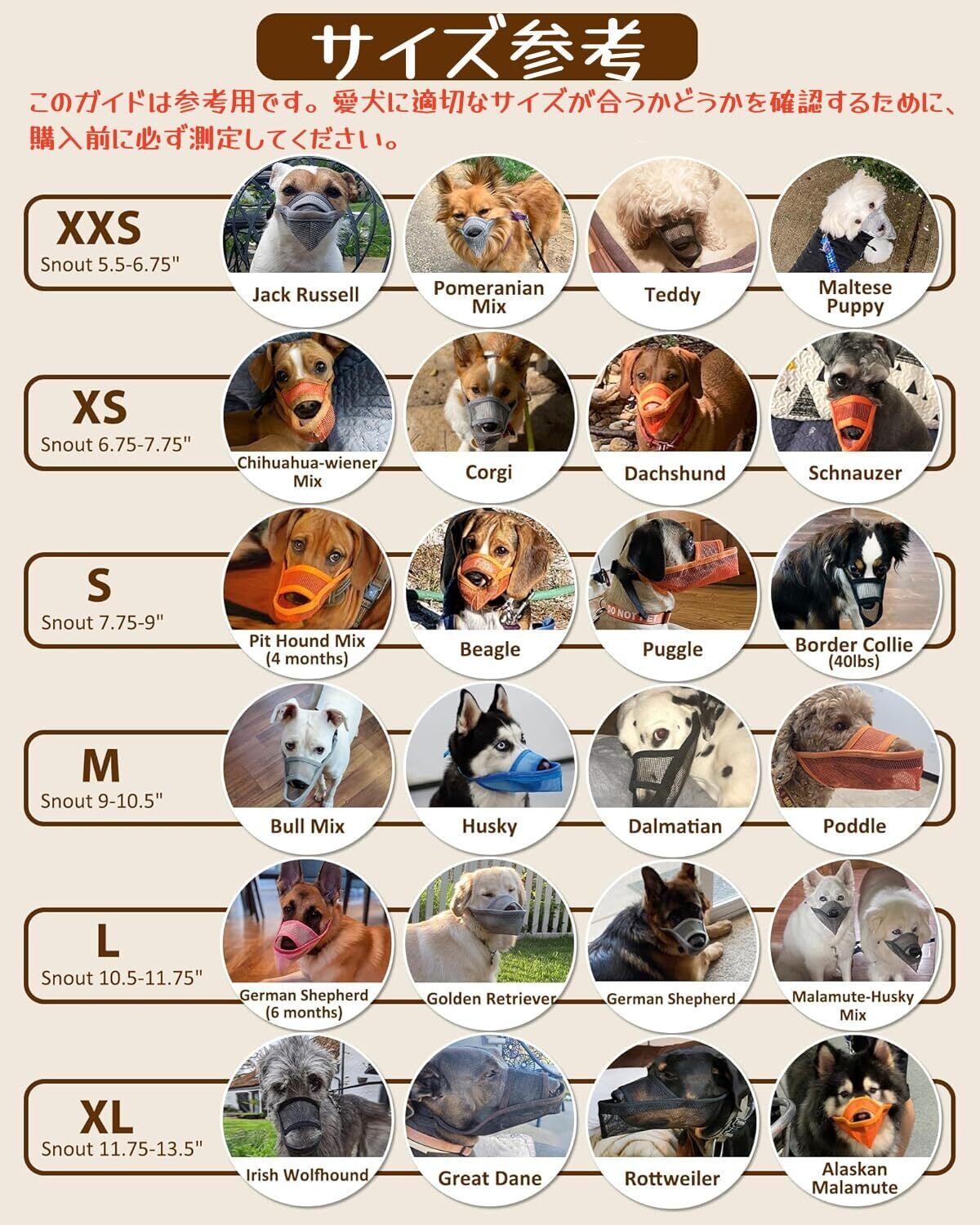 【犬にぴったりフィット】:当社の犬用マズルは、ボーダーコリー、ハスキー、ドーベルマンなどの犬種に最適な、様々なサイズをご用意しています。ペットの快適さに合わせて最適なサイズをお選びいただくために、サイズ表をご参照ください。