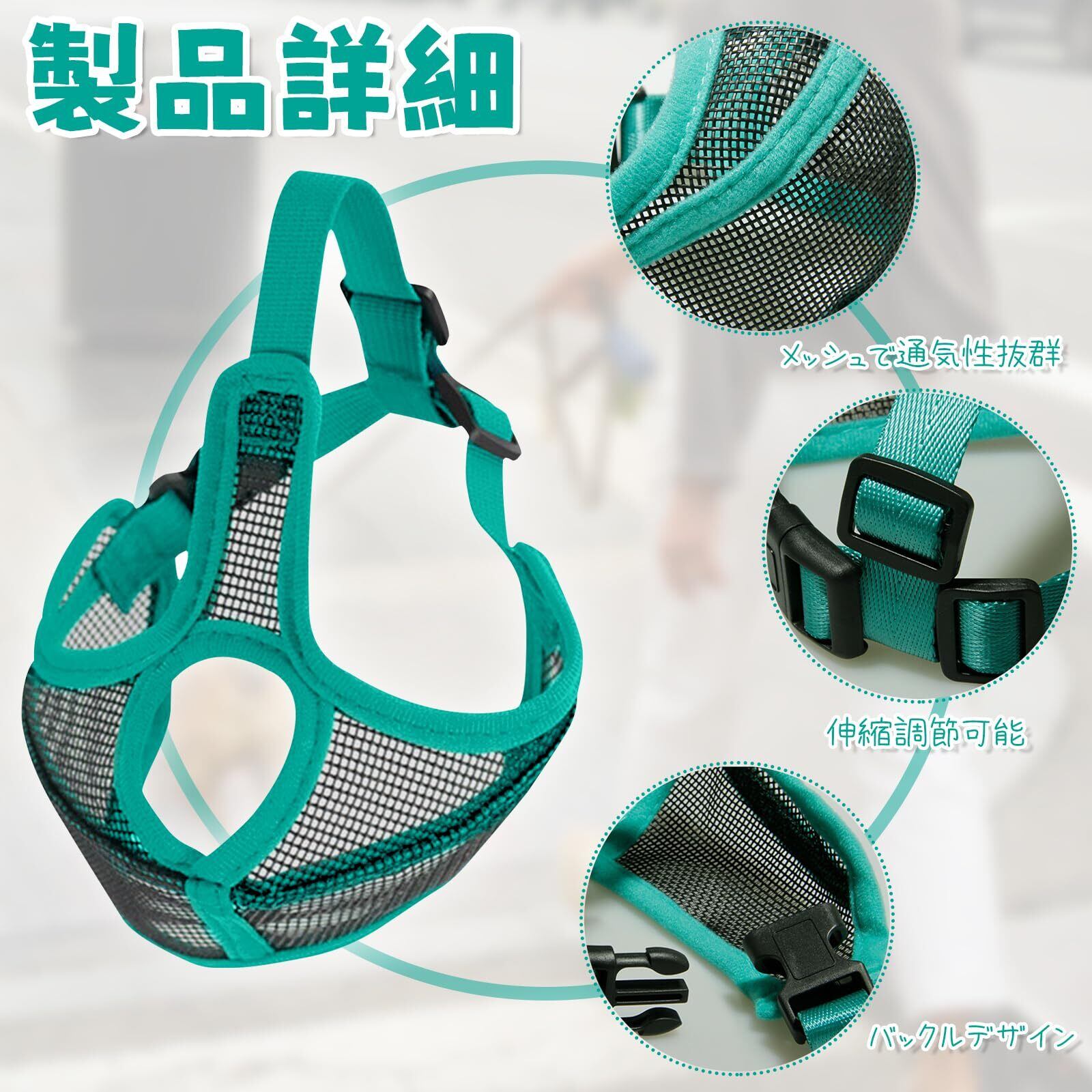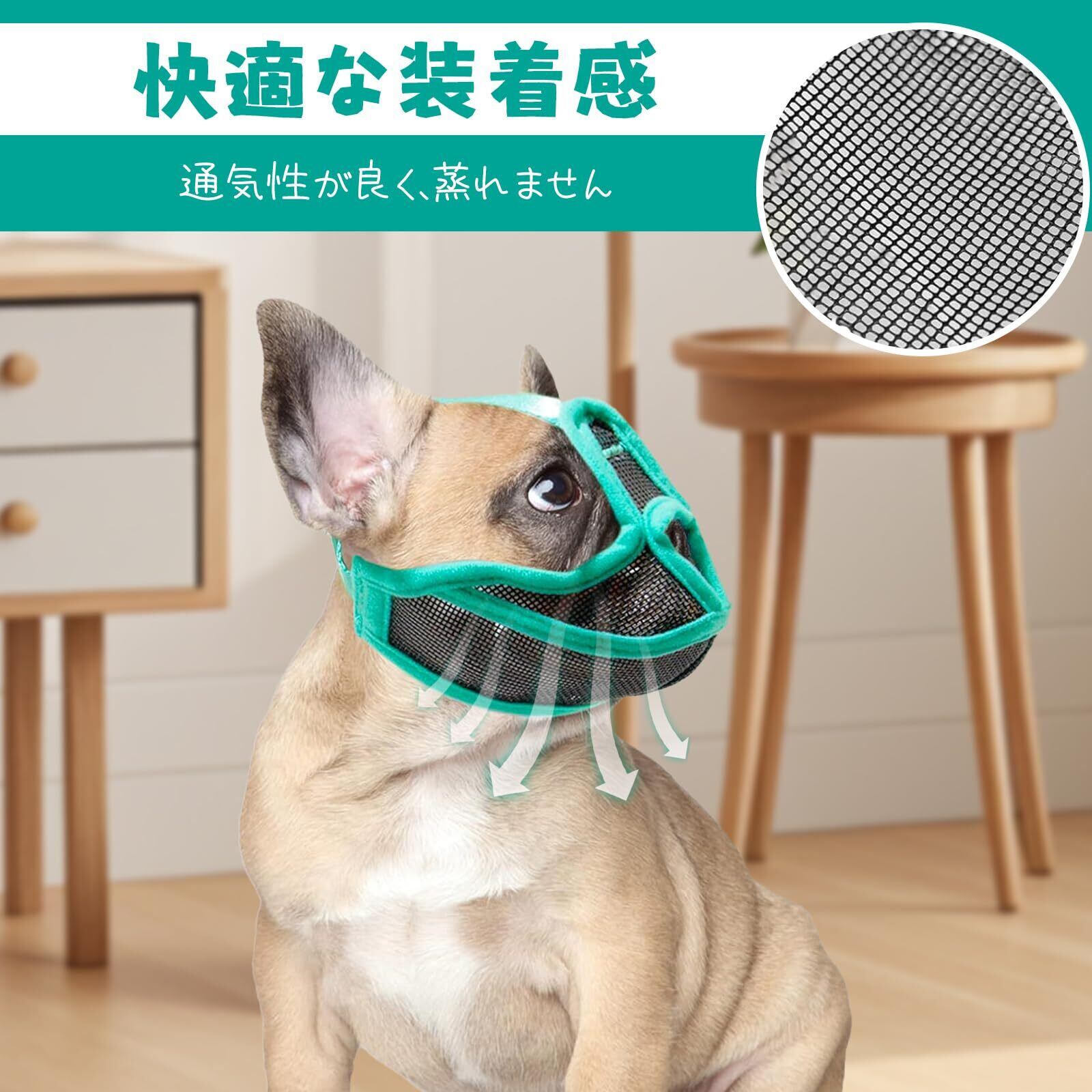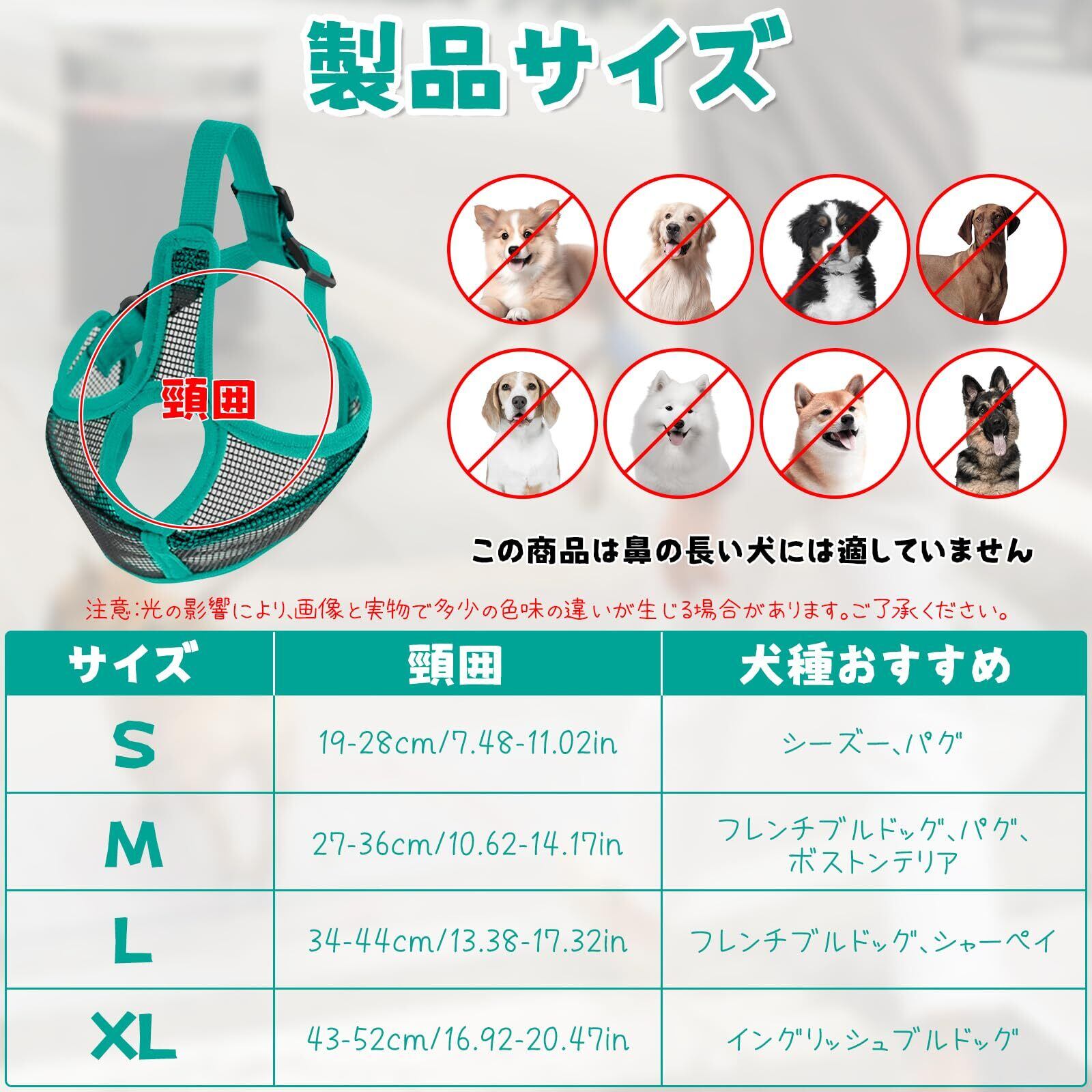 Charming Club 口輪 犬用マズル シアン 4サイズ 無駄吠え癖対策 噛みつき 拾い食い防止 メッシュ通気性よい サイズ調整可能 小型犬 中型犬対応 短い鼻の犬専門 フレンチブルドッグ 着脱しやすい ワンちゃん外出用 忍者マスク造型