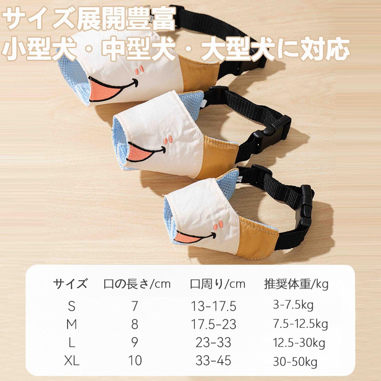1. 多機能対応の犬 吠え防止グッズ 生活を快適に 愛犬の無駄吠え、拾い食い、噛みつきをしっかり防止する犬の口輪です。日常の家具破損や傷口の舐め壊しも防ぎ、散歩、トレーニング、家庭での保護など多様なシーンで活躍。犬の噛みつき防止グッズとして、飼い主さんと愛犬の安心を両立させます。 2. 通気性に優れた柔らか素材の犬用口輪 通気性の高いメッシュ素材を採用し、口元にやさしくフィット。装着時も呼吸を妨げず、蒸れにくい設計で愛犬が快適に過ごせます。無臭で肌に優しい素材なので、長時間装着しても負担が少なく、日常的な使用に最適です。 3. サイズ展開豊富 口輪 小型犬・中型犬・大型犬に対応 S/M/L/XL の 4 サイズをご用意し、口輪 小型犬(3~7.5kg)、口輪 中型犬(7.5~12.5kg)、大型犬 口輪(12.5~30kg)まで幅広く対応。愛犬の口周りと頭周りを測定して選ぶことで、しっかりとしたフィット感を実現します(短吻犬には不向きですのでご注意ください)。 4. 調整可能な固定設計 ズレなく安心使用 強力なマジックテープとワンタッチバックルを採用し、頭周りと口元に合わせて自由に調整可能。装着後はズレにくく、愛犬が暴れてもしっかり固定され、安全性を高めます。着脱も簡単で、日常の使用にストレスが少ないです。 5. お手入れ簡単で長持ちの犬の口輪 耐摩耗・耐噛み素材を使用し、汚れた場合はサッと水洗いで清潔に保てます。色落ちしにくく耐久性に優れ、長期間愛用できます。犬 かみぐせ防止や日常のメンテナンスもラクに行え、愛犬との暮らしを長く快適に続けることができます。 6. カートゥーンデザインでおしゃれ出街にも最適 可愛らしいデザインが愛犬を華やかに ブラウンのクマとブルーのサメの 2 種類のカートゥーン柄を用意し、可愛らしい卡通造型が愛犬の魅力をさらに引き立てます。ファッショナブルなデザインなので、散歩時のおしゃれ出街にもぴったり。実用性だけでなく、外観も注目される犬の口輪として、飼い主さんと愛犬の一緒の時間をさらに楽しくします。
