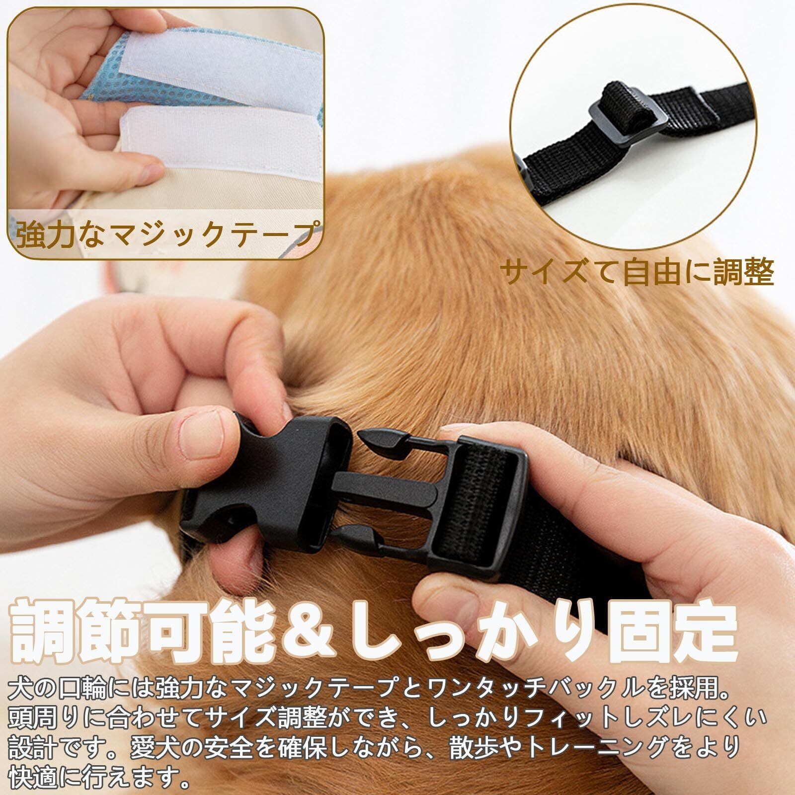 【マジックテープとバックルで二重固定】犬用口輪には強力なマジックテープとワンタッチバックルを採用なのでしっかりフィットしズレにくい。こちらの口輪は嫌がらず装着でき、着脱も簡単で、水やおやつも食べれます。効果ありです!安全性も高い。使いやすいて日常の使用にストレスが少ないです。