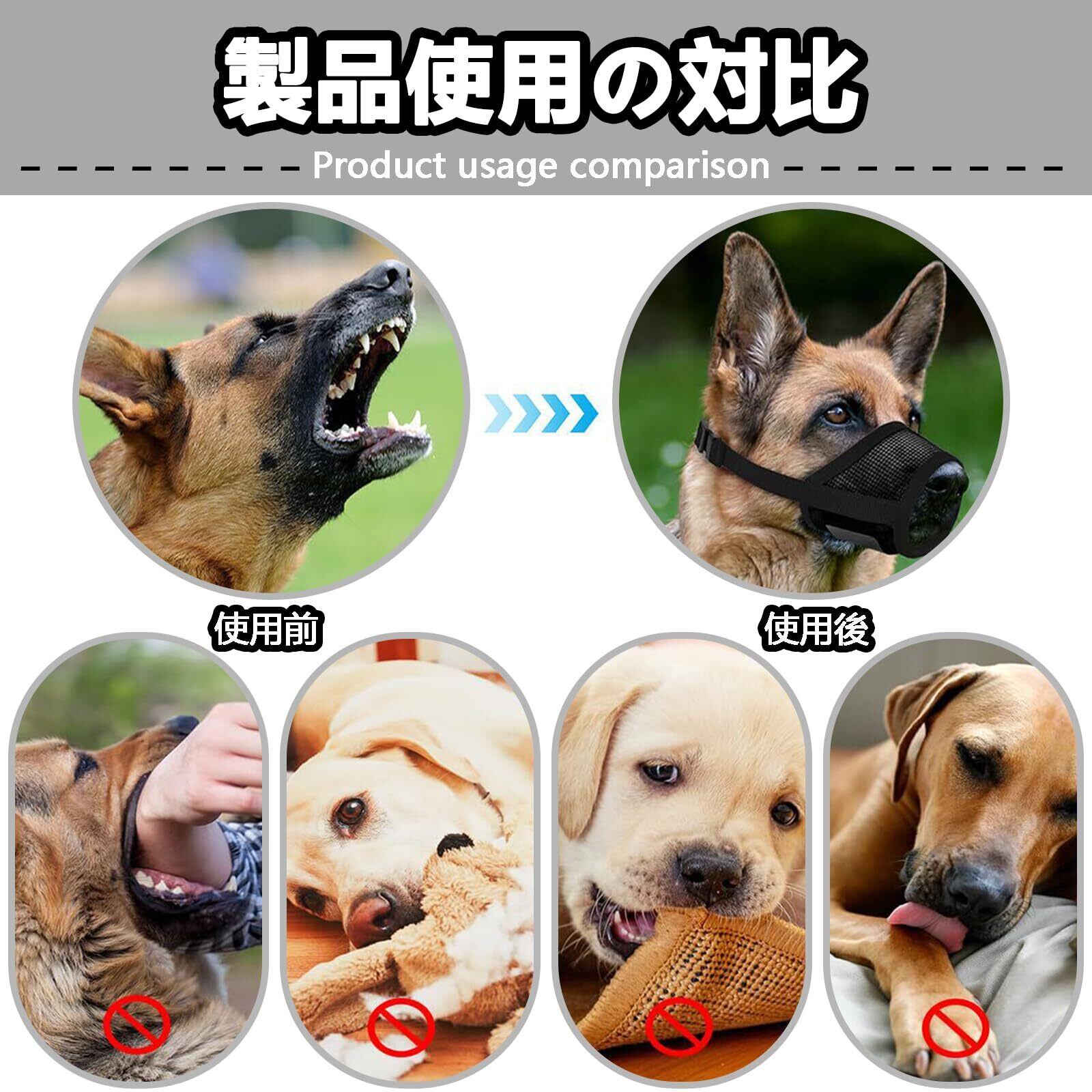 【無駄吠え・噛みつき防止マズル】無駄吠え、噛みつき、誤食を防ぐ犬用口輪、バックル仕様で4ステップの簡単装着、愛犬の安全を守りつつ、周囲への配慮にも、散歩や外出時にも活躍します