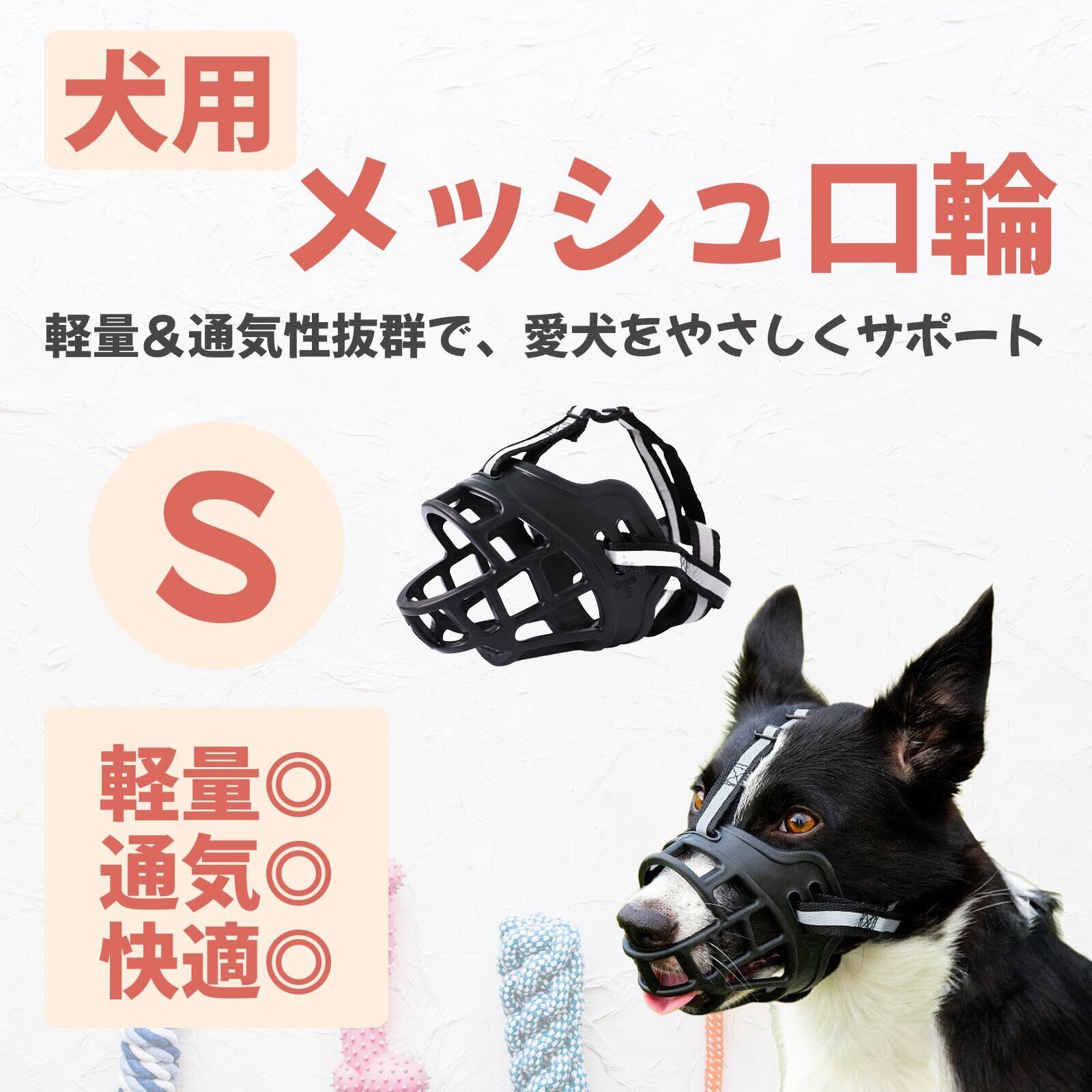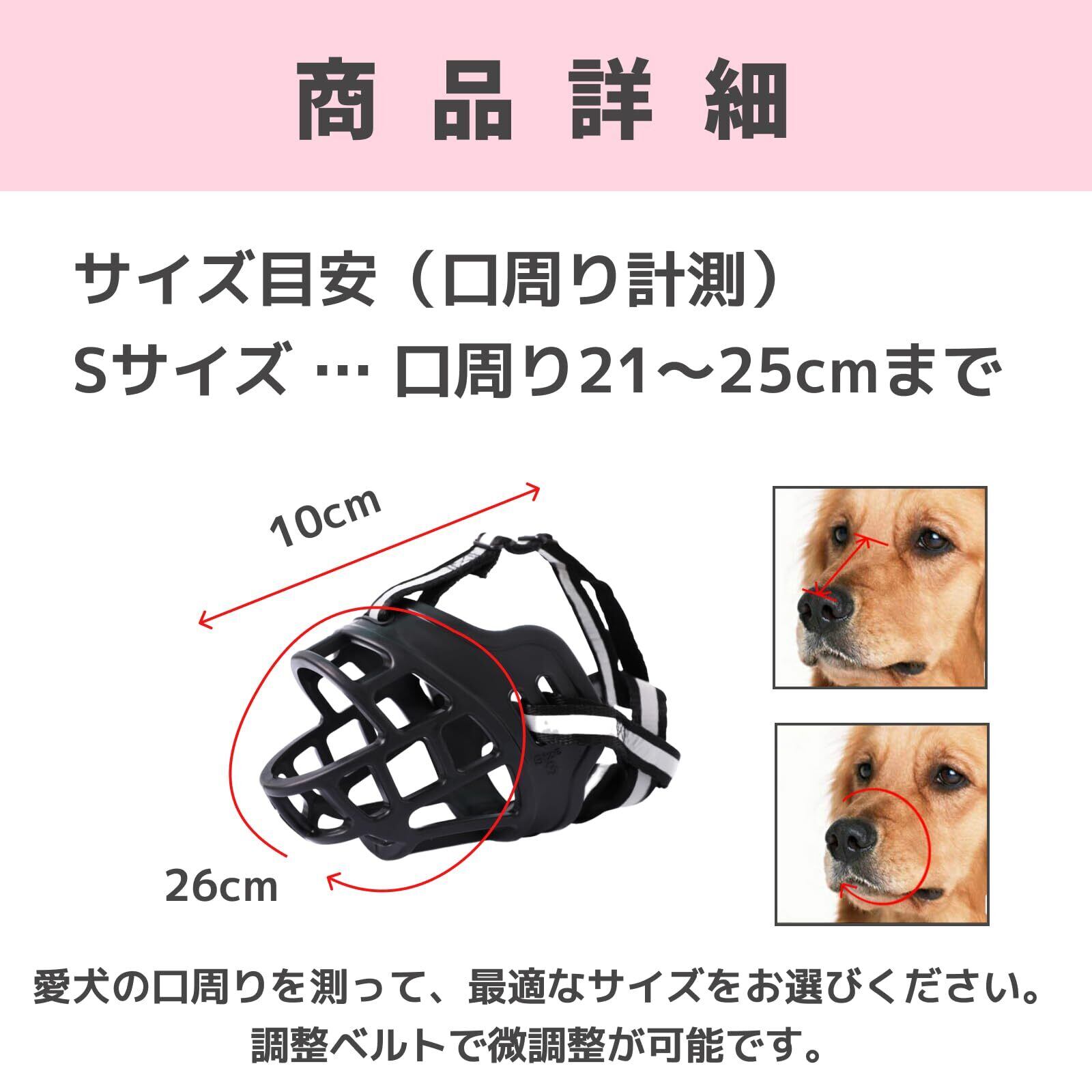 SAKURAN 犬用マズル 口輪 無駄吠え防止 噛みつき対策 拾い食い防止 サイズ調整 通気性 飲みやすい 散歩用 小型犬 中型犬 大型犬向け ブラック (S)