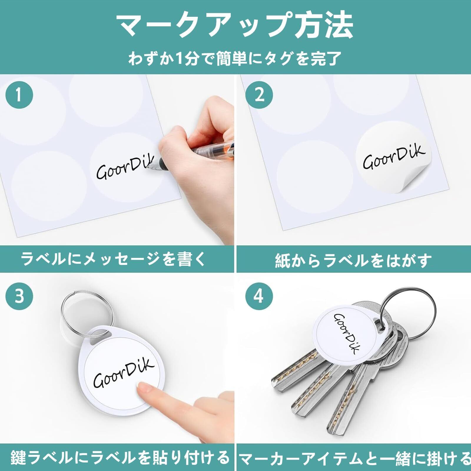 【クイック識別】マーキング物品を油性ペンで記入したり,キーホルダーの空白の円形中央領域にラベルを貼り付けることができます(商品には含まれません)。鍵 タグの両面には書くことができ、7色(赤、オレンジ、黄、緑、青、紫、白、)をすばやく分類し、混合を防ぐことができます