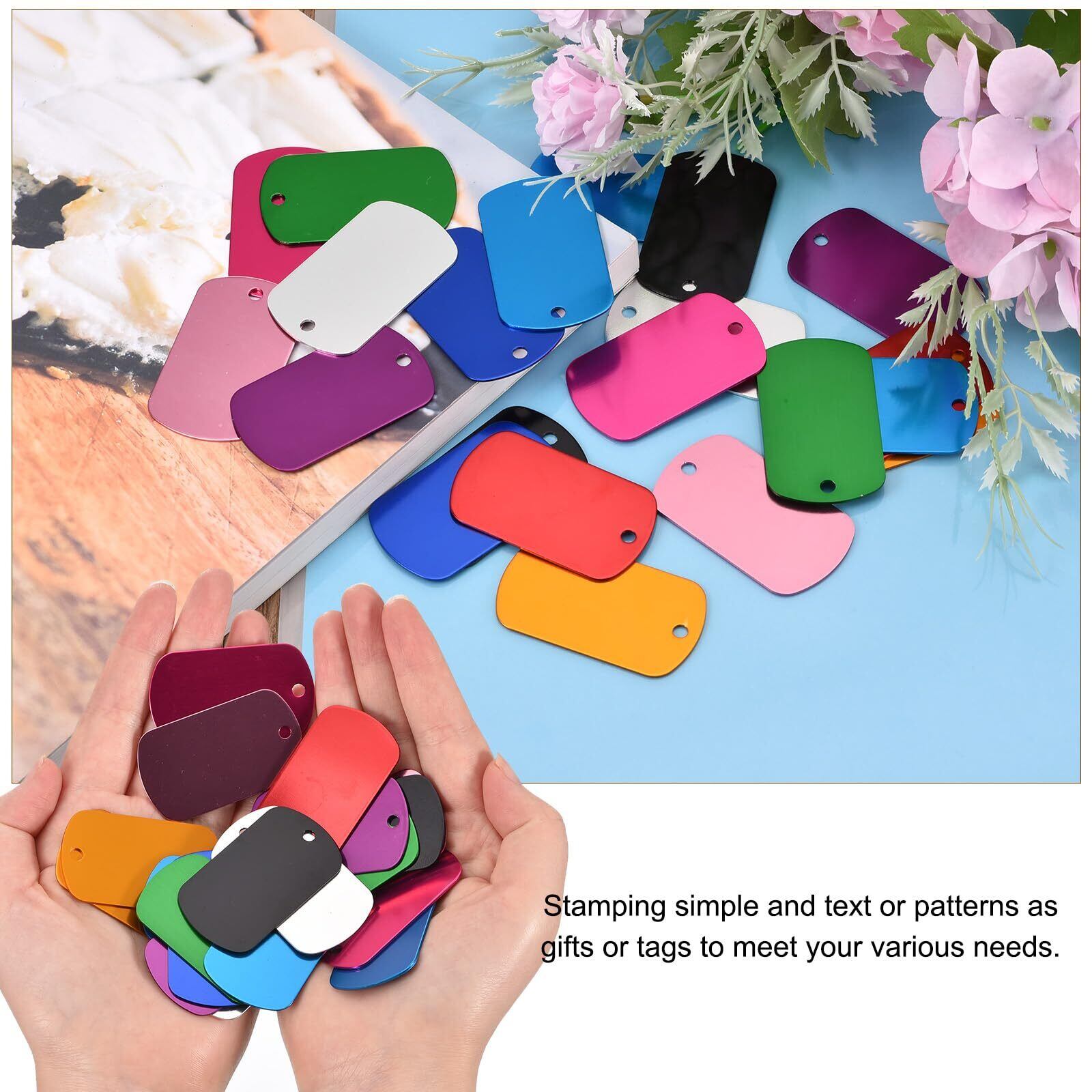アルミ製で軽量、磨きやすく光沢のある美しい一体成型の金属スタンピングタグです。錆びたり色褪せたりしにくいです。アルミ彫刻の無地タグに好きな絵柄や文字を転写して、自分だけのタグをデザインできます。創造力を発揮して、スタイリッシュなタグやアクセサリーを作成できます。