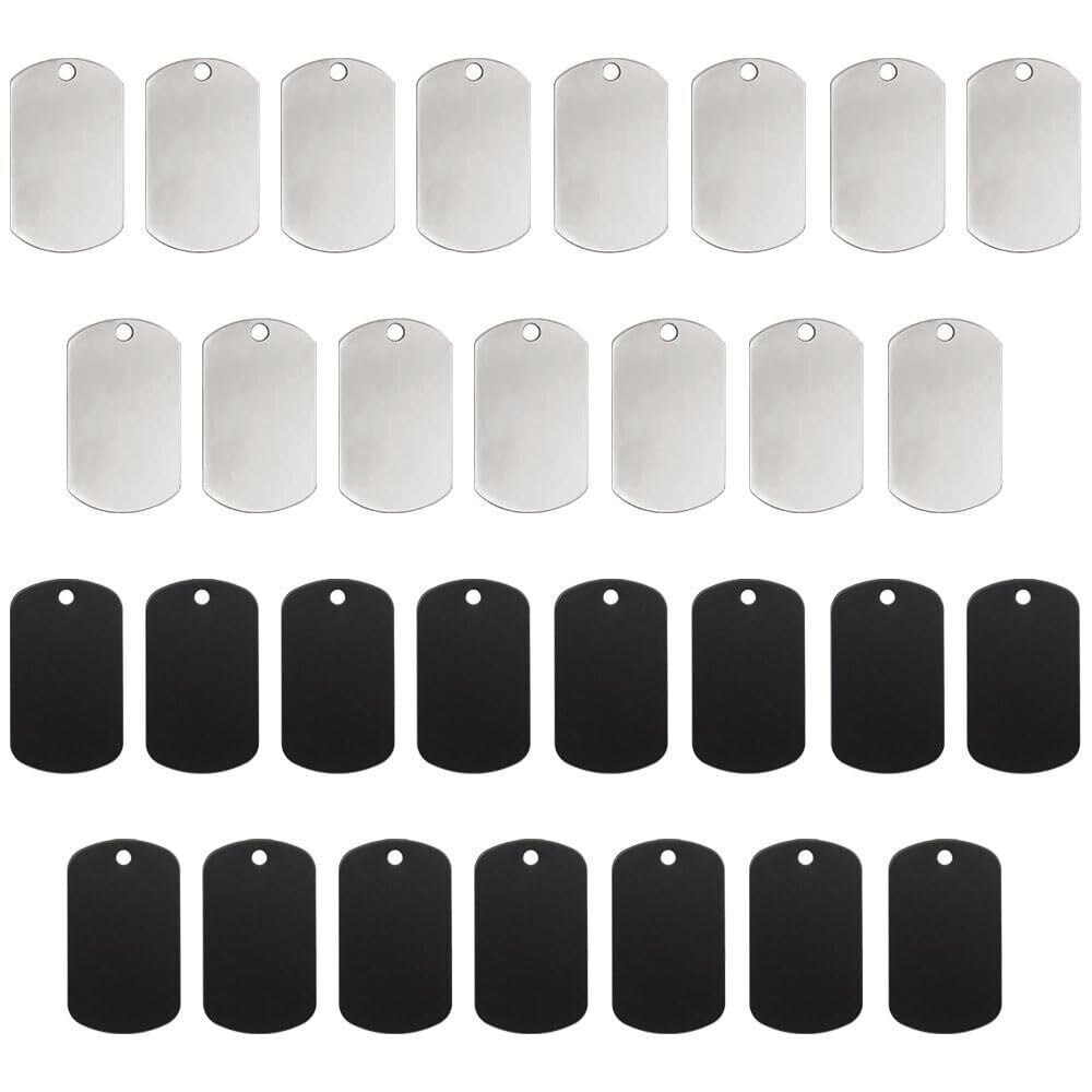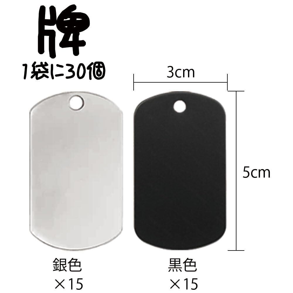 ペットIDタグ ネームタグ 30 枚セット 5cm×3cm 空白札ペンダント 両面刻印可能 迷子札 ペット 猫犬 首輪用 名入れ DIY工芸品 トラベルタグ 銀色、黒色各 15 枚