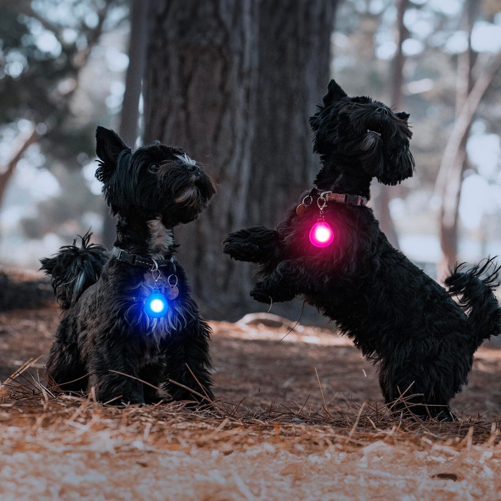 Dolitego 2個 夜間の散歩用犬用ライト - 視認性の高い犬用首輪ライト クリップオン犬タグ 夜間ランニングライト (青 + ピンク)
