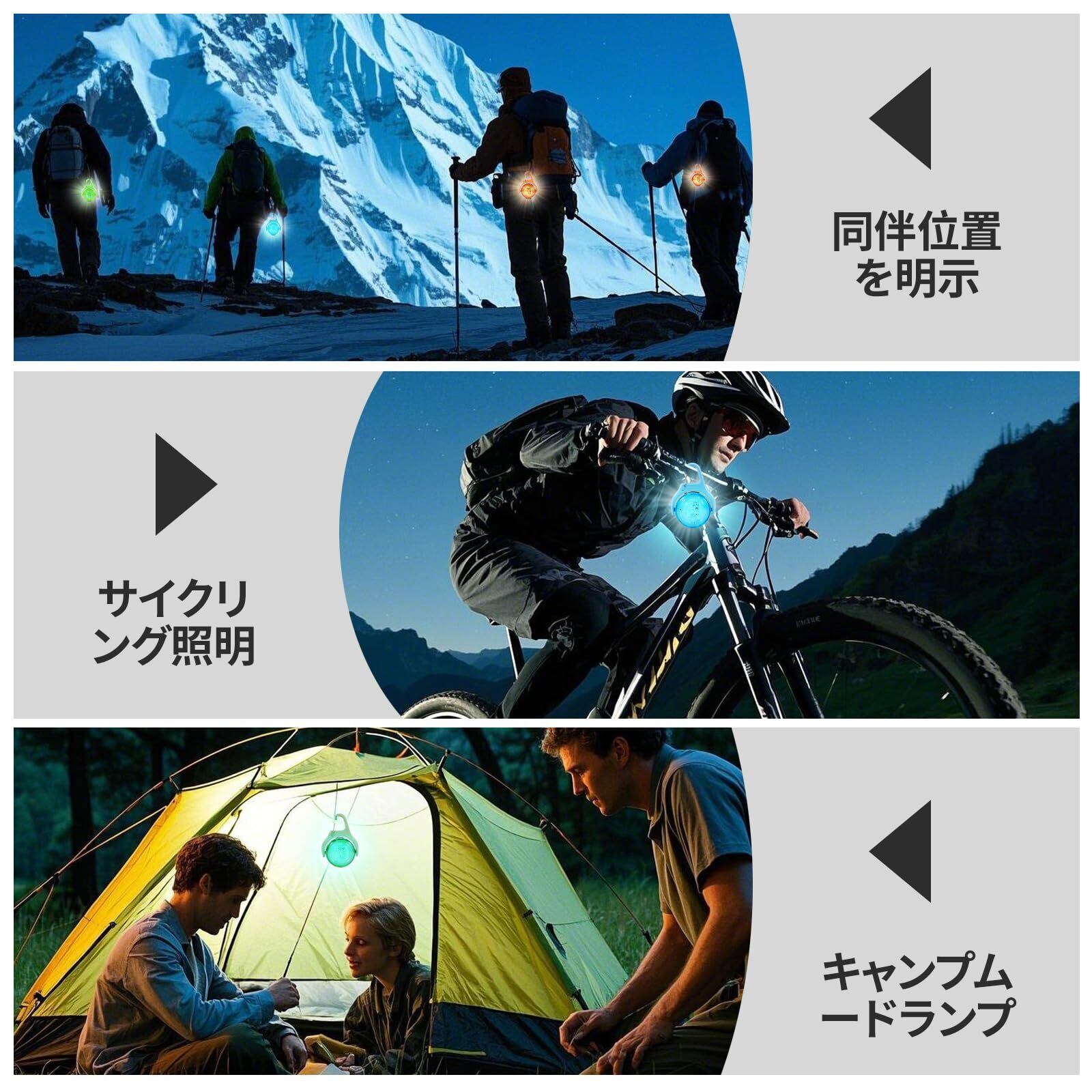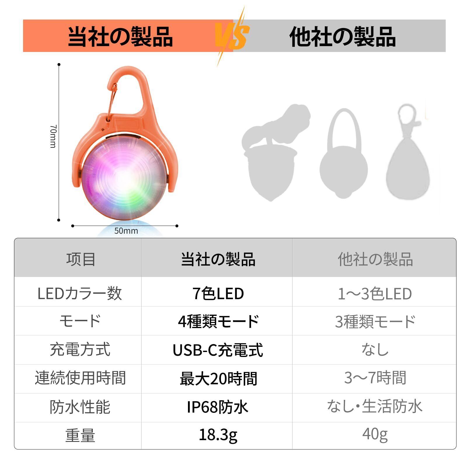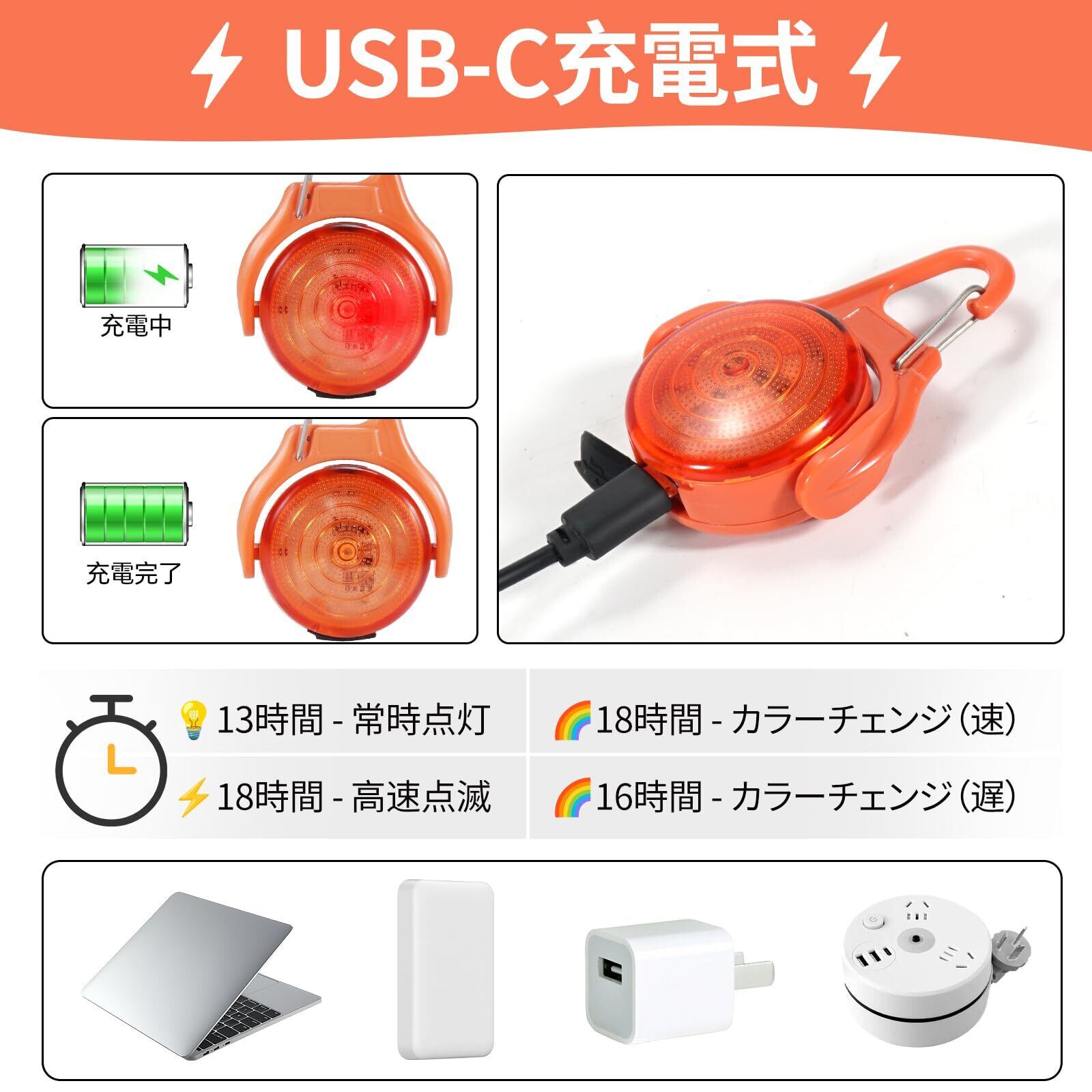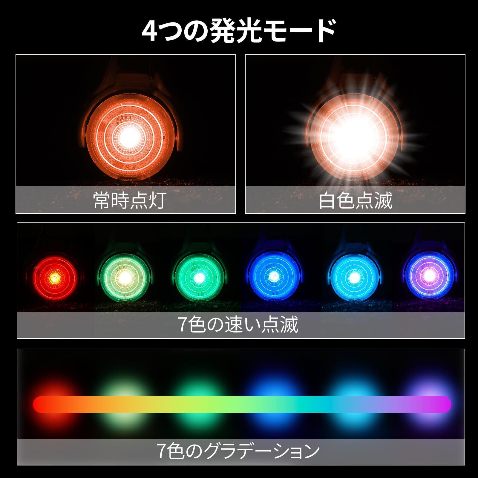 4段階調光可能:通常点灯▶▶高速点滅▶▶カラーチェンジ(速)▶▶カラーチェンジ(遅),500mの夜間視認距離