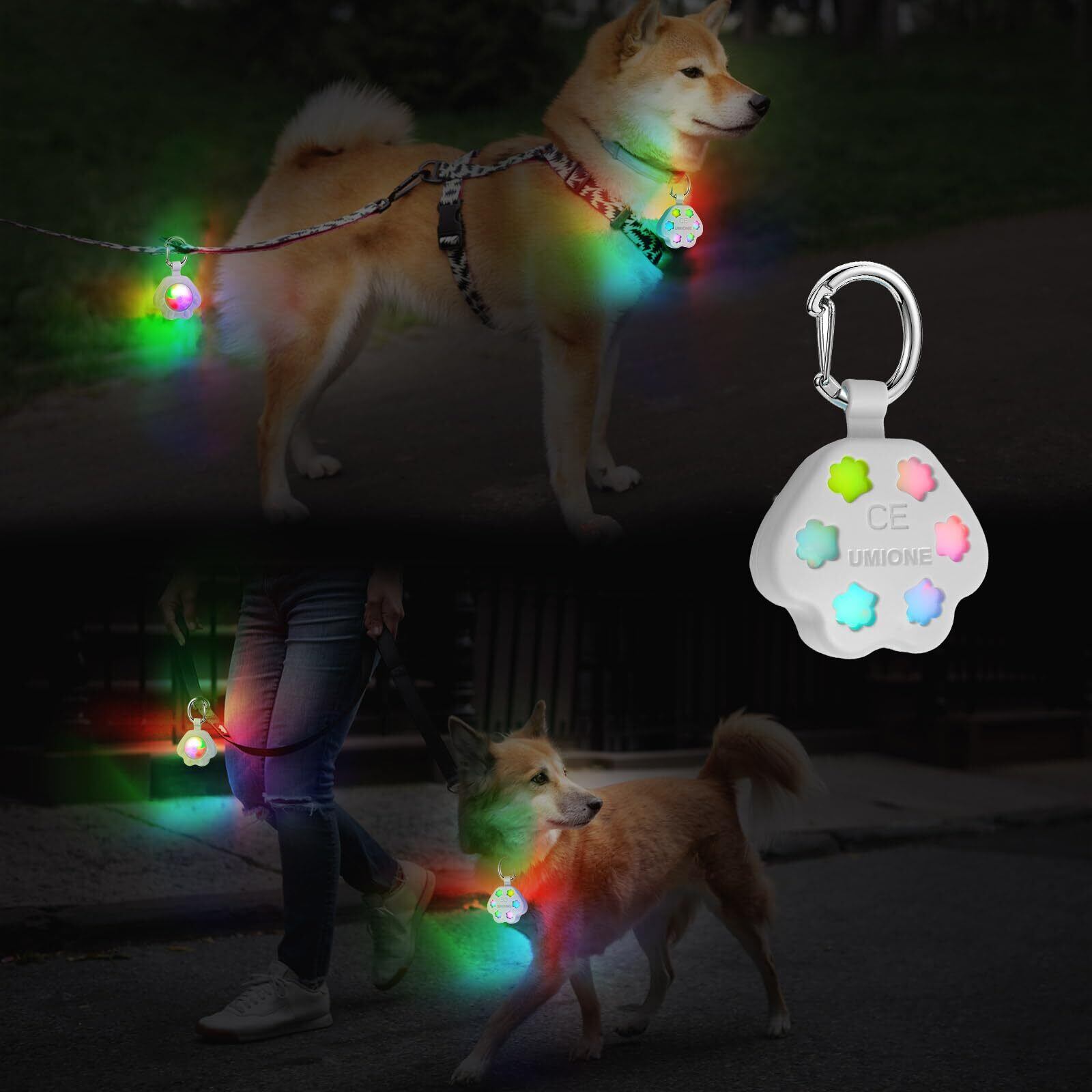 マルチカラー & 超高輝度: この犬用安全ライトは、高速点滅、低速点滅、点灯の 7 つの異なる色の変化を示します。暗闇でも約 500 メートル (547 ヤード) まで視認できます。