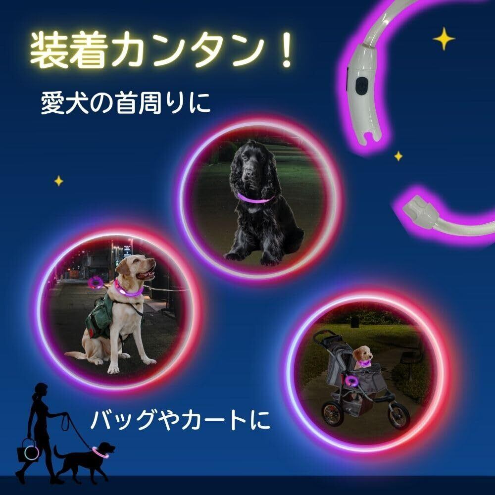 遠くからでもよく見える!USB充電式のライトリングでピカピカ2色(赤・青)点灯するお散歩用ライト・バッグやカートに・愛犬の首周りに!※カット可能範囲 約25~59cm