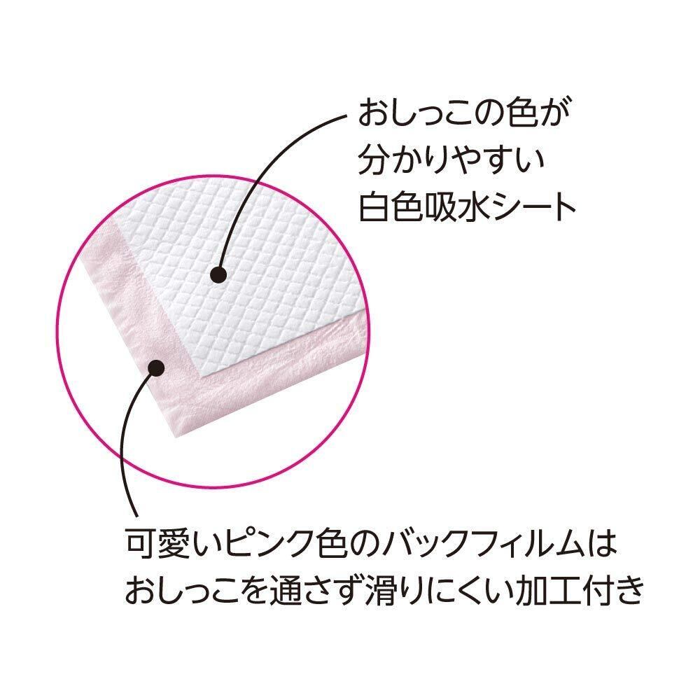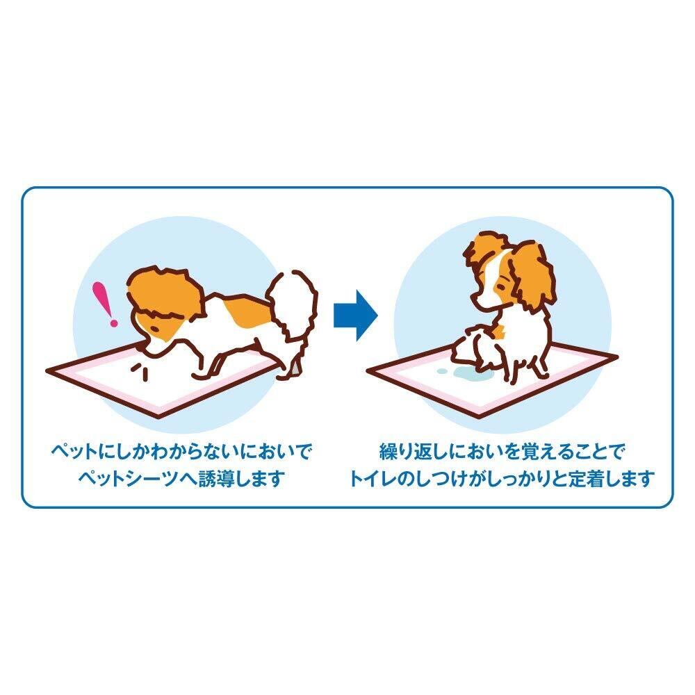 しつけるシーツ幼犬用neoは、幼犬に最適なしつけ機能強化しました。 ・引っかきに強い不織布を採用しているので、幼犬のいたずらにも安心! ・消臭剤ケスモン、抗菌効果のAg+を加えて更に消臭効果アップ! ・しっかり厚型タイプで長時間でも安心の吸水力! ・おしっこを通さないポリシートとオシッコの広がりを抑えるエンボス加工 ・おしっこの色がわかりやすい白色吸水シート ・可愛いピンク色のバックフィルムはおしっこを通さず滑りにくい加工付き 【しつけるトイレのとは】 1、ペットにしかわからないニオイでペットシーツへ誘導します。 2、繰り返しにおいを覚えることでトイレのしつけがしっかりと定着します。
