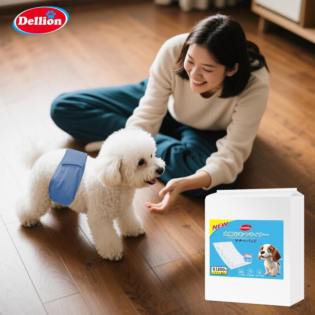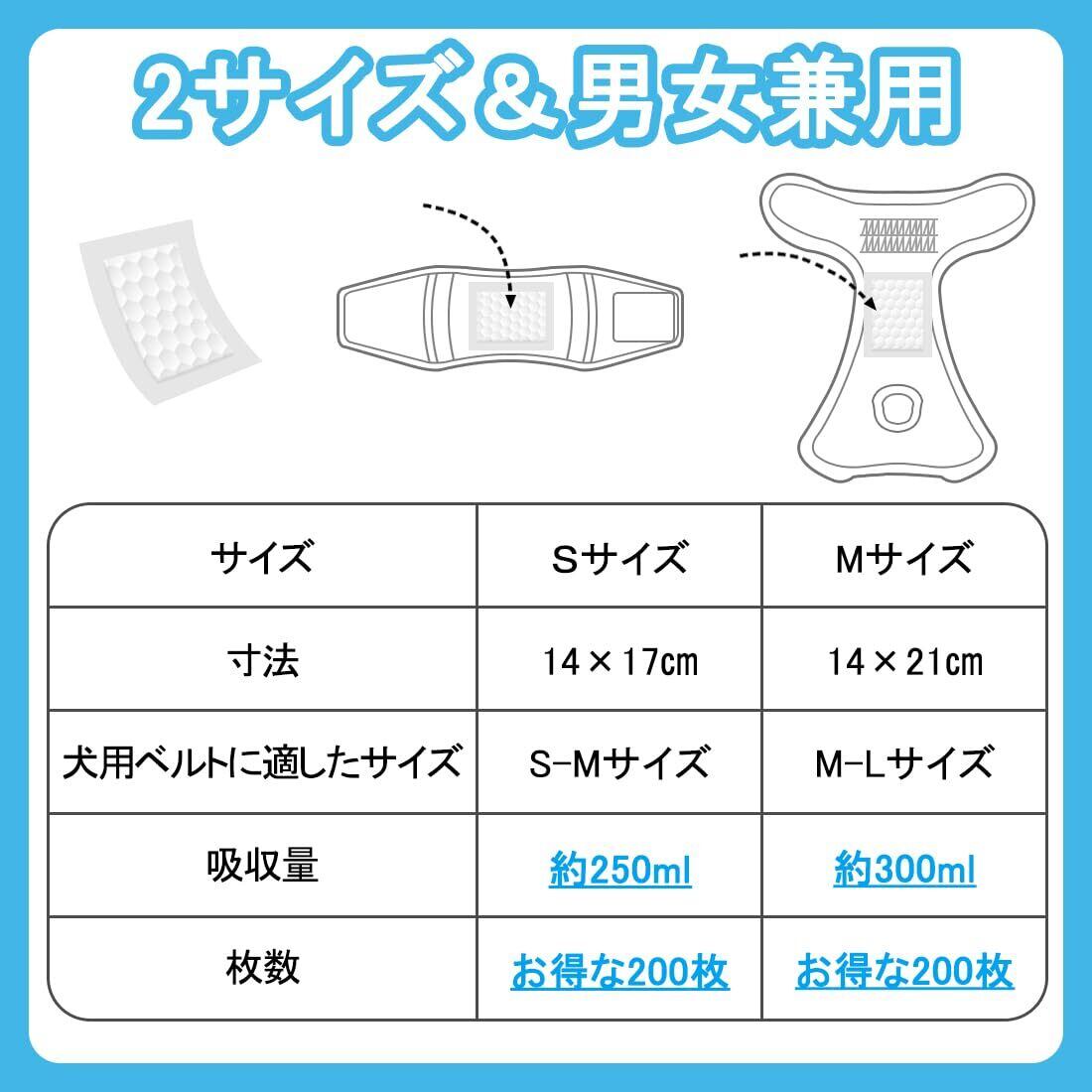 Dellion 犬 マナーパッド 犬用おむつライナー 瞬間吸水 200枚入り マーキング防止 男の子 マナーベルトパッド 女の子生理用 ペット用おしっこ吸収シート (Mサイズ200枚)