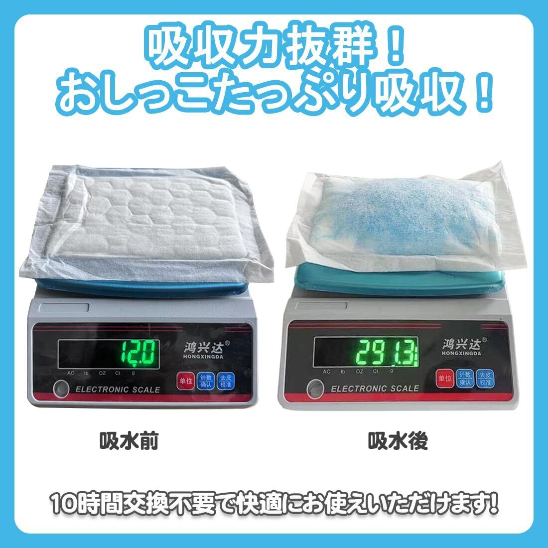 【しっかりとした吸収力】のマナーパッドは瞬時におしっこを吸収します、他のマナーパッドより多く吸収し、S号は約250cc、M号は約300ccまで吸収します。