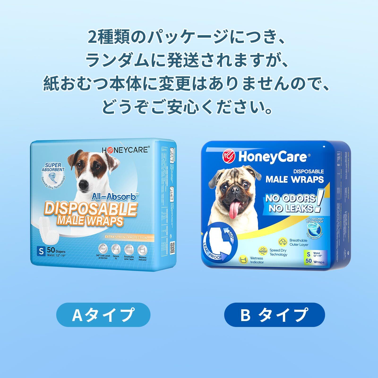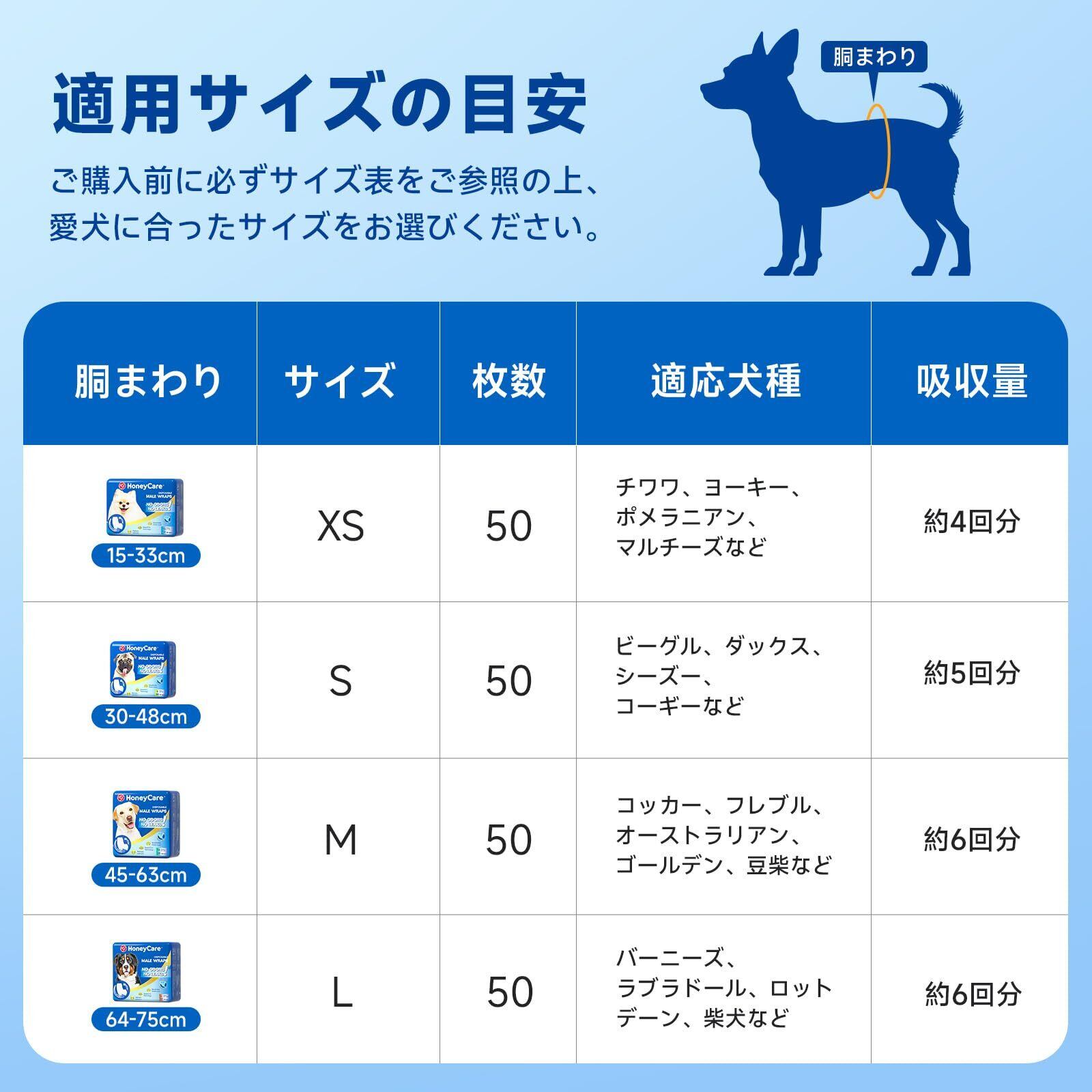 HONEYCARE ハニーケア 犬 おむつ 男の子用マナーおむつ おしっこ用 50枚入り ペット用 高吸収性 柄付き (S)