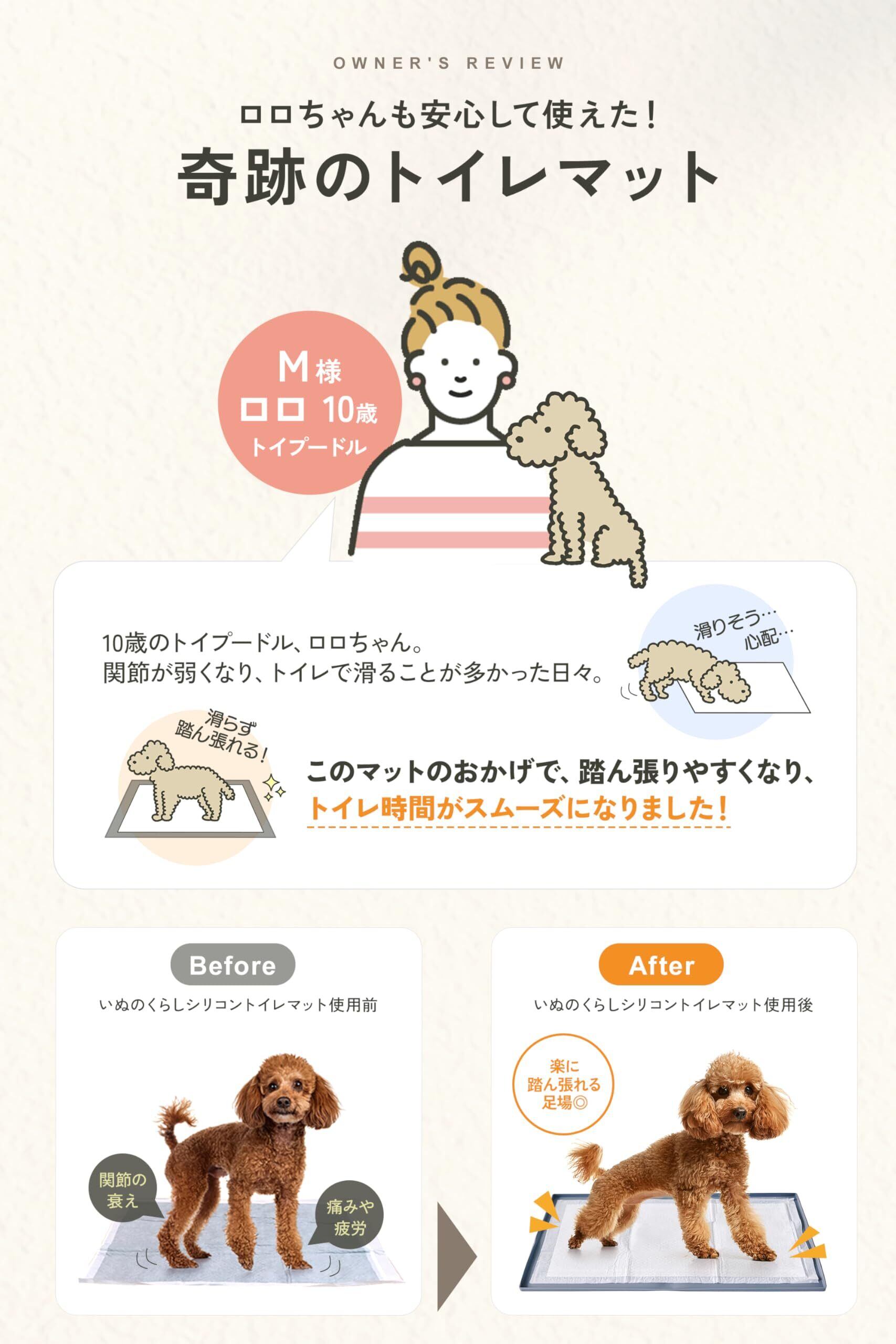 [いぬのくらし] 犬 トイレトレー トイレマット シリコンマット シリコン トイレトレーニング 滑り止め しつけ用 ワイドサイズ 洗える 水洗い 獣医師監修 (ベージュ(ロゴあり), M)