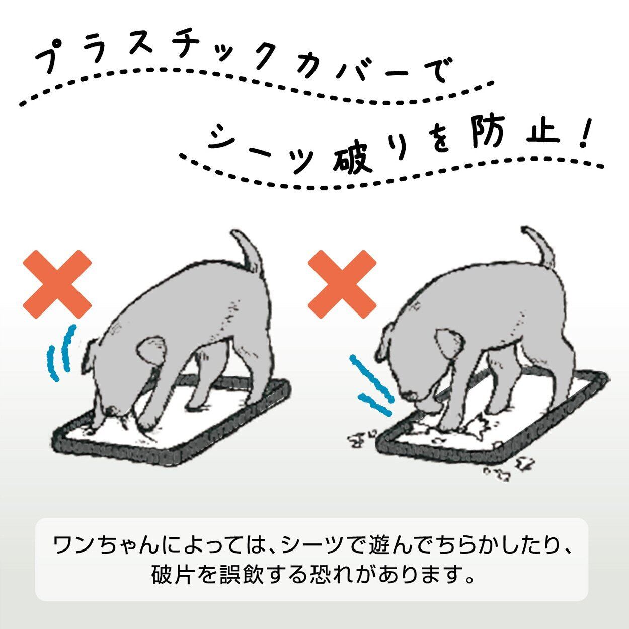 <取付け方法>※使用する場合は、ペットシーツを敷いてください。(レギュラーサイズ ドッグトレーに取付ける場合)①フレームの上からシーツ破れ防止カバーをはめてください。②フレームのツメがシーツ破れ防止カバーに固定されているか確認してください。(ワイドサイズ ドッグトレーに取付ける場合)①フレームの上からシーツ破れ防止カバーを2枚はめてください。②フレームのツメがシーツ破れ防止カバーに固定されているか確認してください。<トイレのしつけ方>①愛犬が大小便をする場所を決め、トレーを置きます。②愛犬がニオイをかぎまわり、ソワソワしはじめたらトレーの上に連れて行きましょう。③大小便をシーツ以外にした時は、直ちに注意しニオイが残らないようにふき取ってください。④トイレ時にはいつも立ち会い、上手にできた時には、よくほめてあげることで習慣づけましょう。