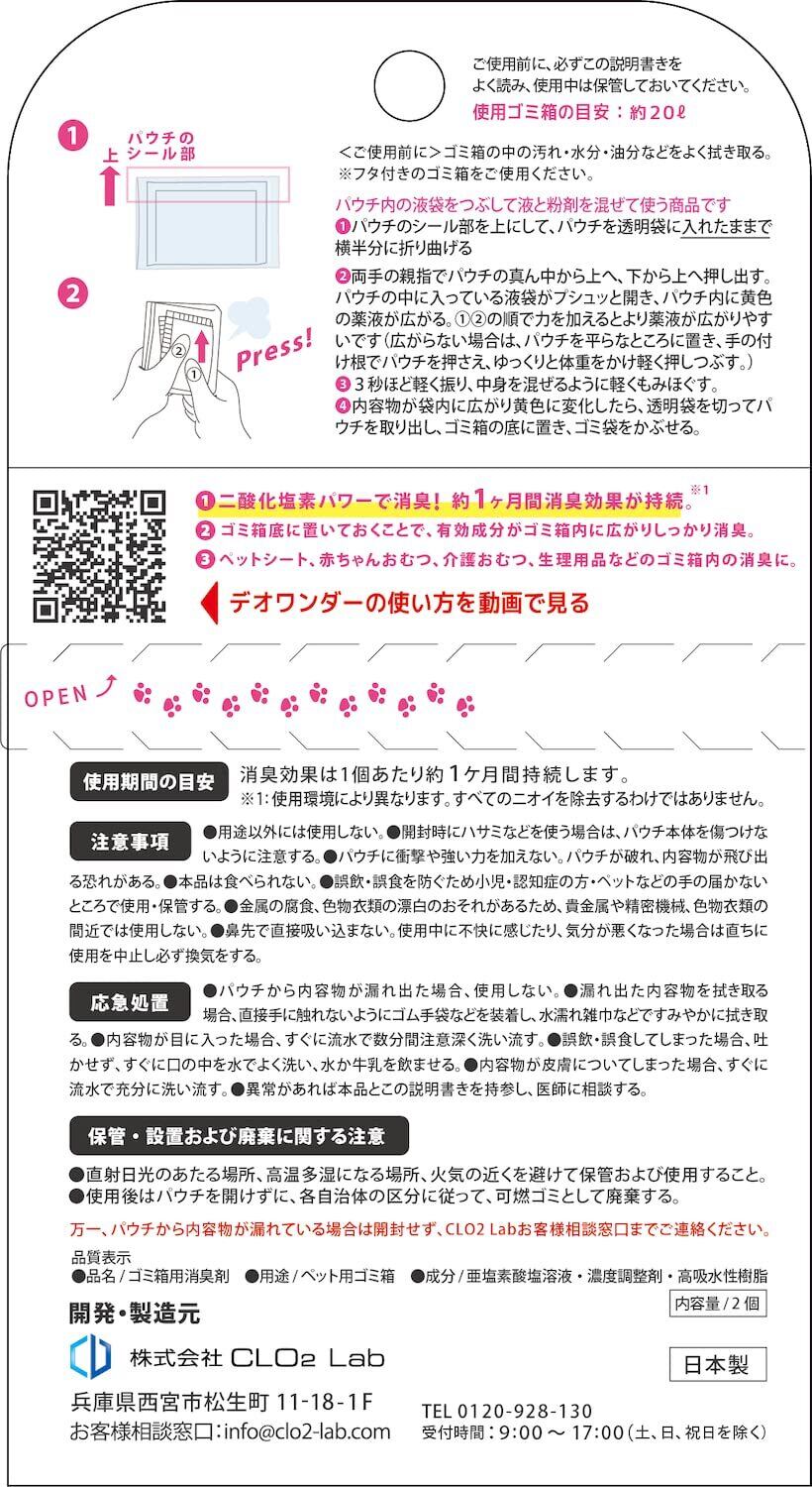 デオワンダー ゴミ箱消臭剤 ペット用 2個入【2ヶ月】 ペット ペットシーツ 犬 猫 赤ちゃん おむつ 介護 防臭 消臭 臭わない 無香料 香料無添加