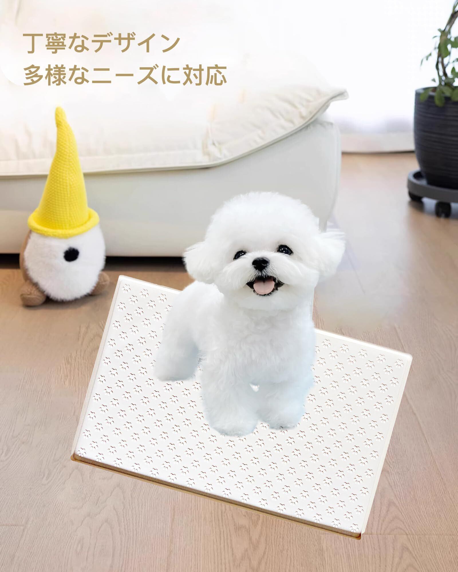 【エッジデザイン】犬 トイレ ワイド 広いエッジは液体がこぼれる心配がなく、角は丸みを帯びているので汚れが落ちやすい。 また、多数のくぼみがずれを防ぎます。くぼみも最適な大きさです。非常にコンパクトなデザインです。