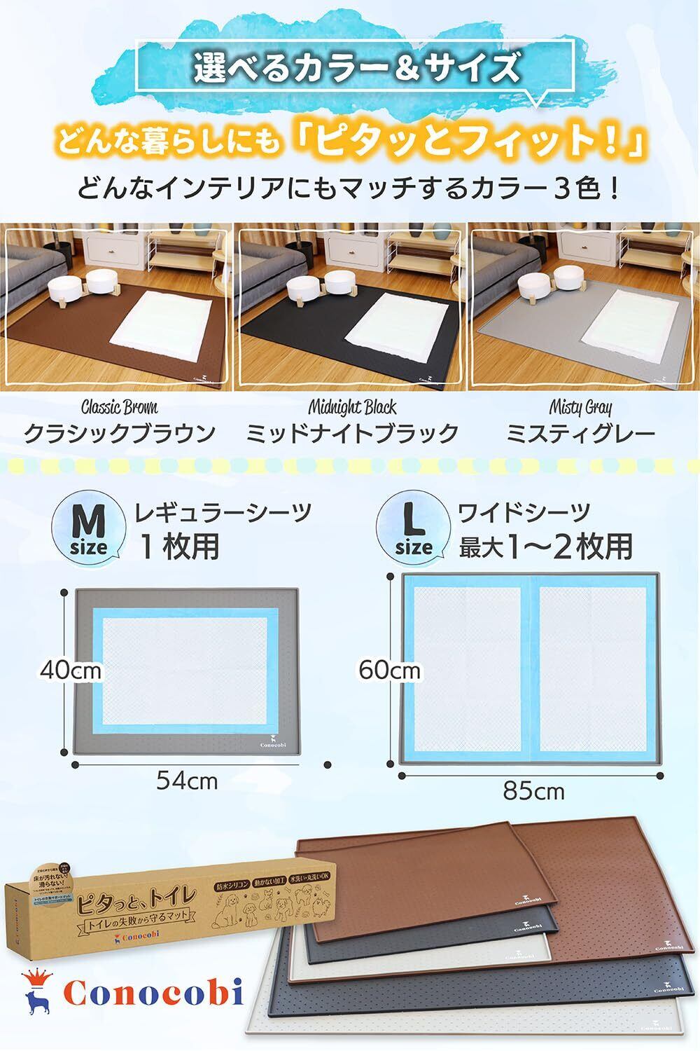 【トイレの失敗も安心】 Conocobi 犬トイレ 犬用トイレ シリコントイレマット 「ピタッと、トイレ」 犬 ペット 防水 (Mサイズと ワイド なLサイズ) おしっこトレー おしっこマット ペットマット (ミスティグレー/M)