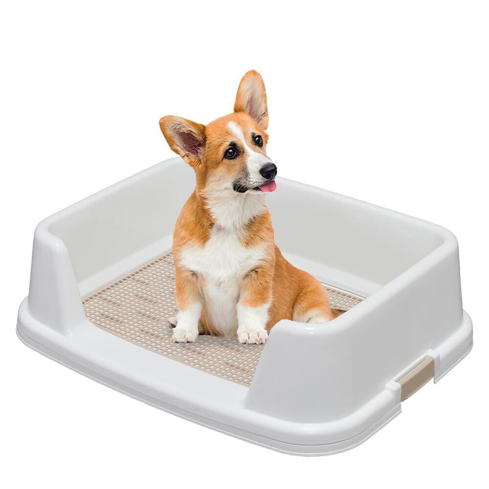 【トレーニングに最適なトイレ】:トイレを覚えやすい囲い付きタイプのペットトイレ。ふちが高いのでおしっこの飛び散り防止にも効果的。
