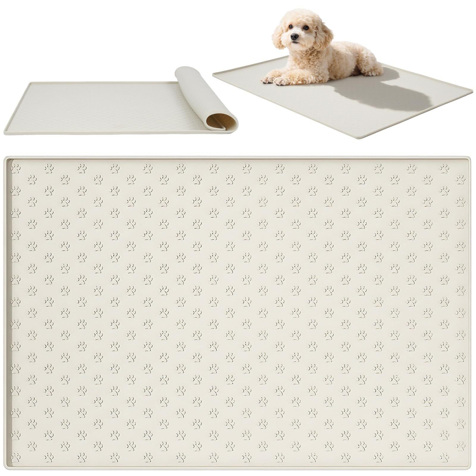 aleawol 犬 トイレトレー シリコン 60x80cm 大型 トイレマット ワイド 【可愛い肉球柄 】ペットシーツ 縁高設計でこぼれ防止 滑り止め 水洗い可能 お手入れ簡単 ペット用食事マット トイレトレーニング用(クリーム)