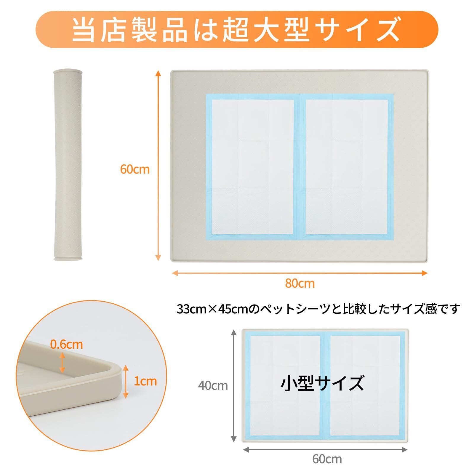【いつでも一人で使える】シリコン製トイレトレーは、ペット用トイレの新タイプ。60x80cmの特大サイズと1cmの超低段差フラット形状で、踏み込みにくさを効果的に軽減。ペットのつまずきや滑りを防ぐだけでなく、広々としたスペースで足腰の弱い老犬や子犬にもぴったり。メッシュ素材が苦手な大型犬から小型犬まで幅広く適しています。