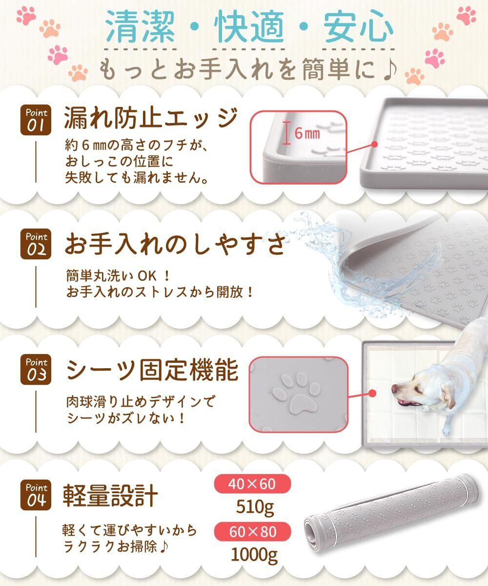 BUDDY TAILS 犬 トイレトレー シリコン ワイド 【ドッグトレーナー監修 x 専門機関安全検査済】 漏れないズレない設計 x お手入れ簡単 x 足に優しい (クリーム, M(40×60))