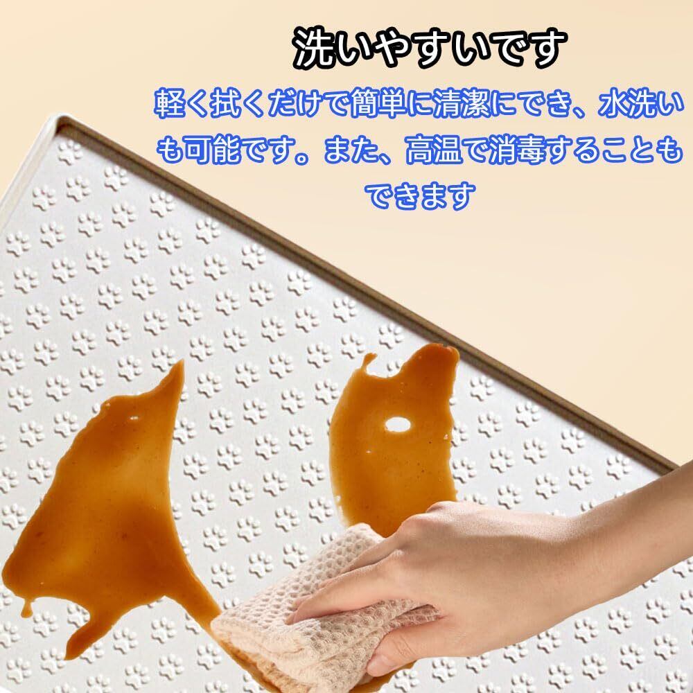 【クリーム色×最適サイズ】60×40cmのクリーム色デザインは、室内のインテリアに溶け込みやすく、汚れも目立ちにくいです。中小型犬の日常使用にぴったりなサイズで、広々としたスペースで愛犬が安心して使用できます。エッジは10mmの高さで液体のこぼれを防止し、角は丸みを帯びた設計で汚れが残りにくく、拭き取りも簡単です。