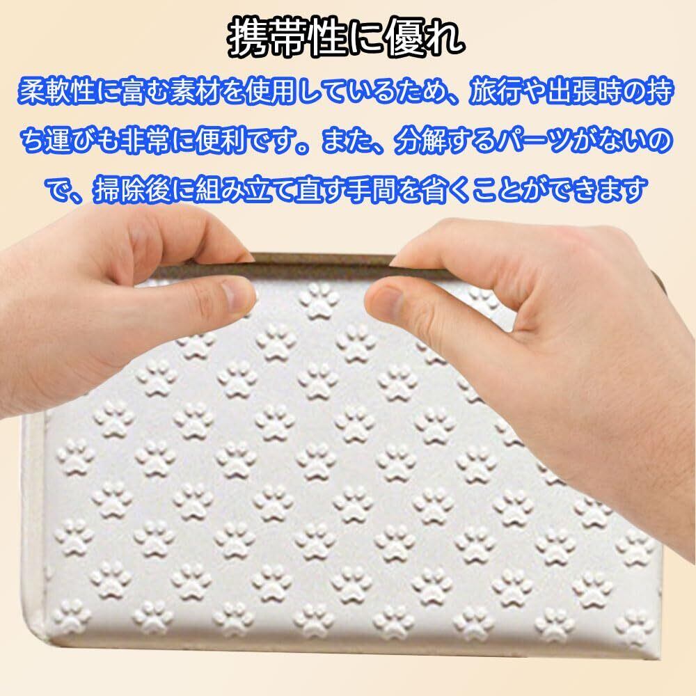 【多用途に活用可能】トイレトレーとしてだけでなく、食事マットとして使用するとエサや水のこぼれを防ぎ、床を保護します。パピーのトイレトレーニングにも最適で、柔らかい質感がトイレとして認識しやすく、トレーニング効率を高めます。車の中に置いても、汚れ防止マットとして活用できます。