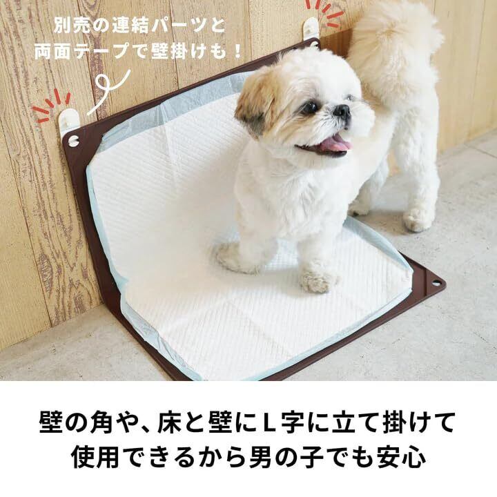 ※シーツは付属しておりません。 ※シリコーントイレトレー単体では壁にL字に立てかけて使用できません。 壁掛けには、別売りの「ワンコトイレマットスーパーワイド用連結パーツ」と市販の両面テープをご使用ください。
