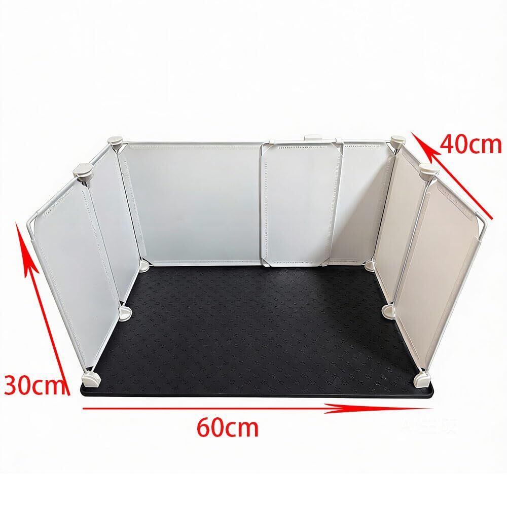 [サイズ]製品は2つの主要部品で構成されています:床を保護するためのシリコンマット、60cm X 40cm X 1cm 、およびペットがマットから小便をするのを防ぐために4つのバッフル、組み立て後に60cm X 40cm X 30cmインチを測定します。シリコンパッドのサイズはスプラッシュガードのサイズよりわずかに大きい。このデザインの理由は、雄犬が尿を出すとき、尿の偏差を防ぐためにより多くの表面があることです。シリコンパッドの余分なサイズは尿を受け取ることができます。