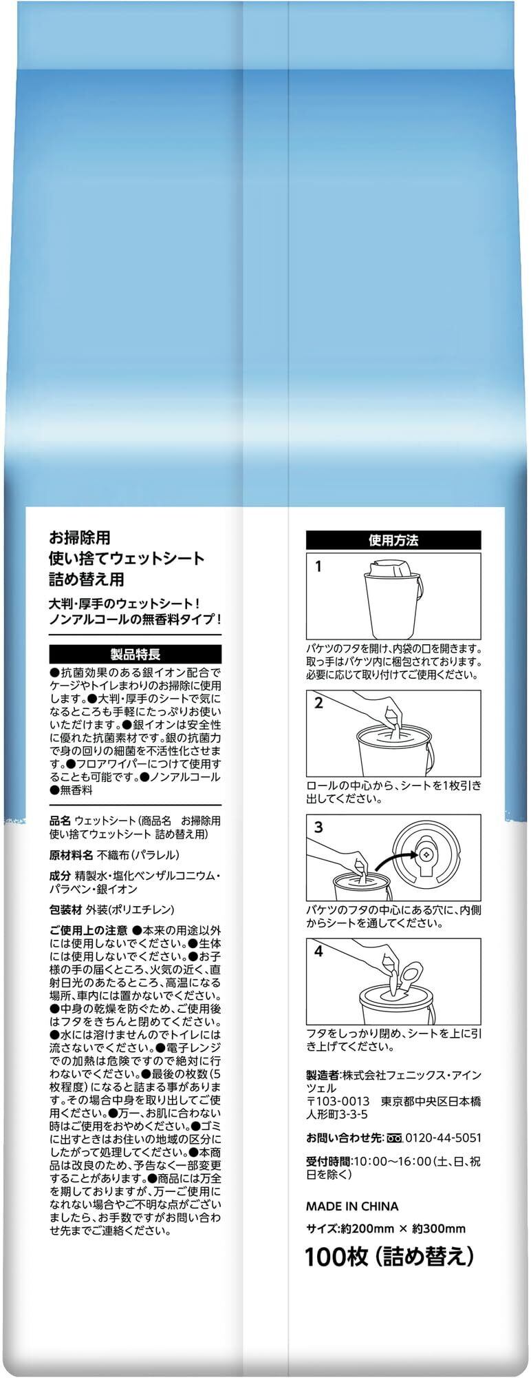 by お掃除用 使い捨てウェットシート 銀イオン配合 無香料 (詰め替え用 100枚×2個セット)