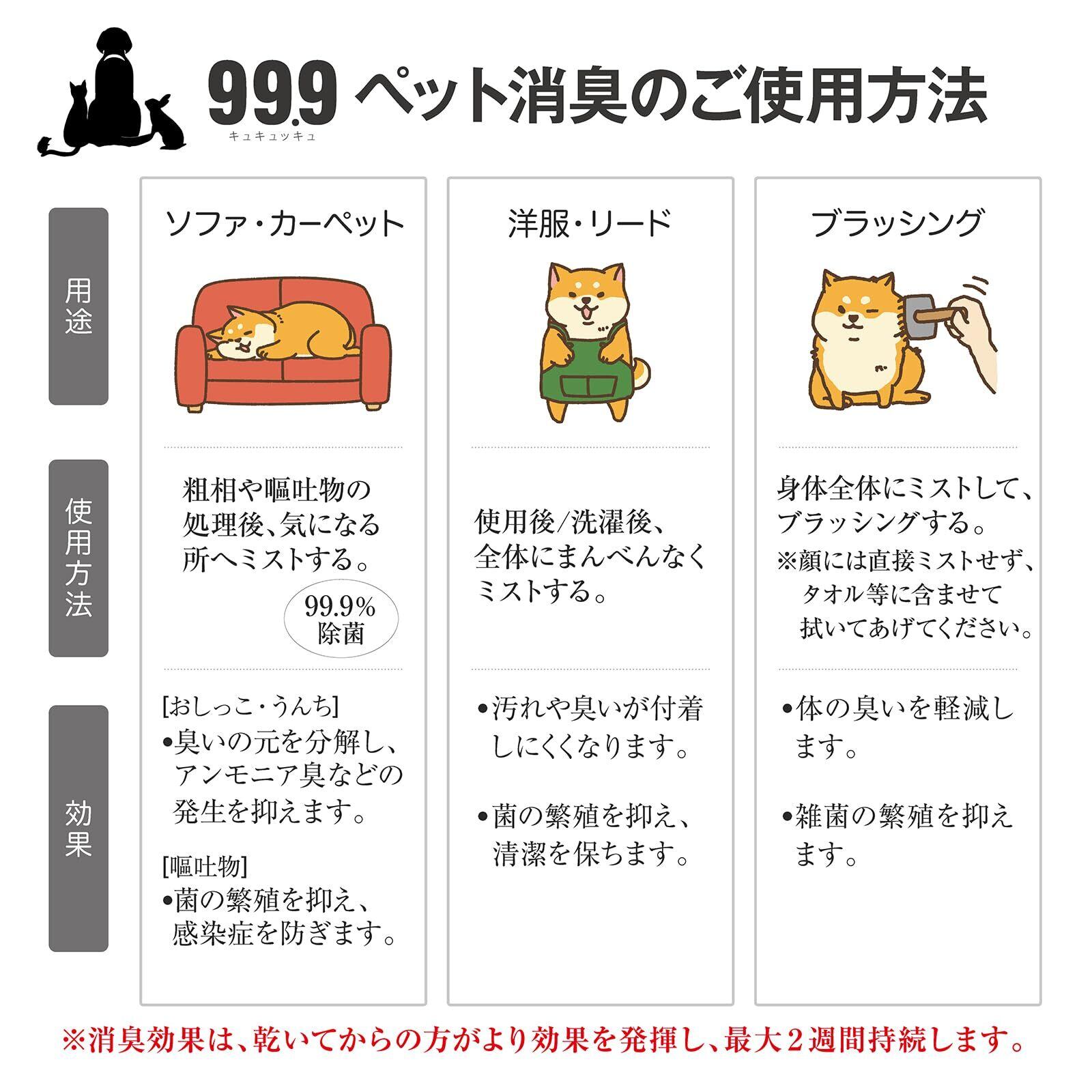 【舐めても安心成分】【動物病院でも使用】99.9ペット消臭除菌 350mlスプレー アンモニア臭/ペット臭に効果あり 消臭と除菌のW効果 無添加の天然成分100%で無香料 国内生産 お散歩後の肉球拭きに 小便大便後のケアにも使用可