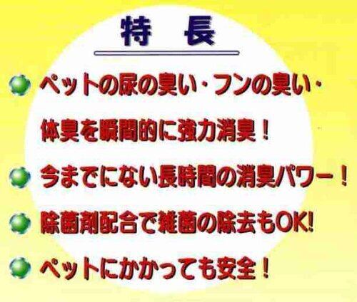 ペット用消臭以外の用途に使用しないでください。誤って飲んだ場合は水を飲ませてください。もし、異常が見られた場合は速やかに獣医師にご相談ください。