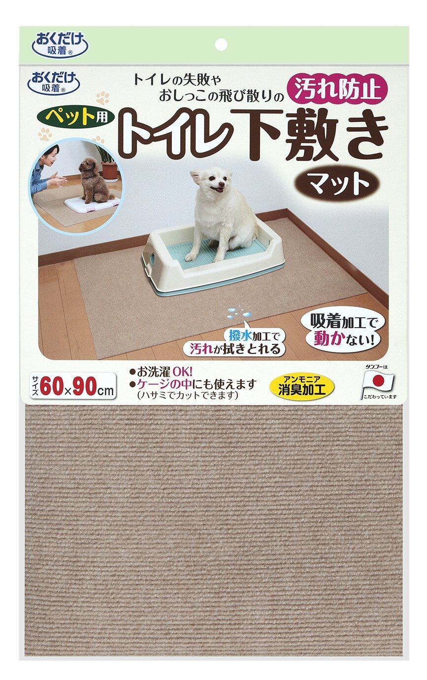 サンコー おくだけ吸着 ペット用トイレ下敷きマット おしっこ 汚れ防止 ベージュ 60×90×(厚み)0.3cm 【日本製 撥水 消臭 洗える ハサミでカット可】 KI-86