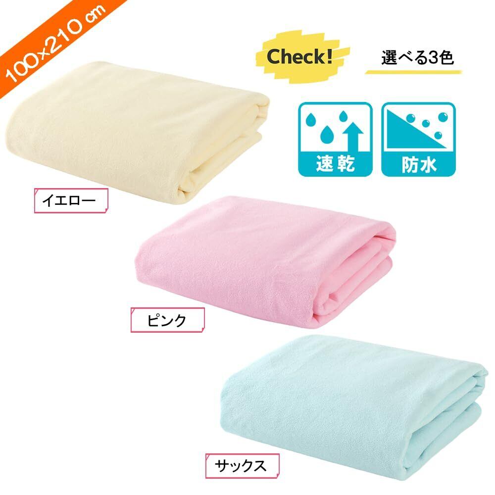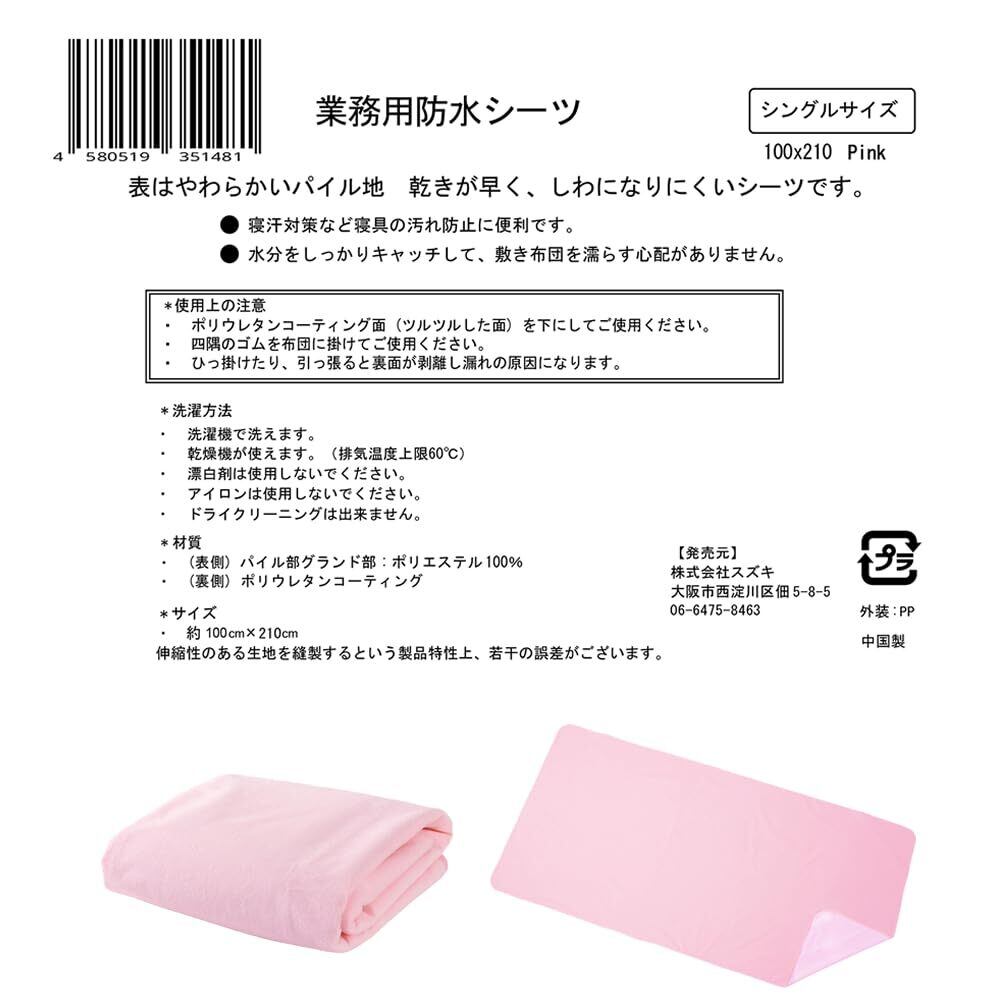 【速乾タイプ】業務用 パイル地防水シーツ (ピンク, シングルサイズ 100cm×210cm(ロングサイズ 全身用)
