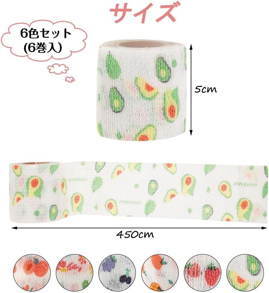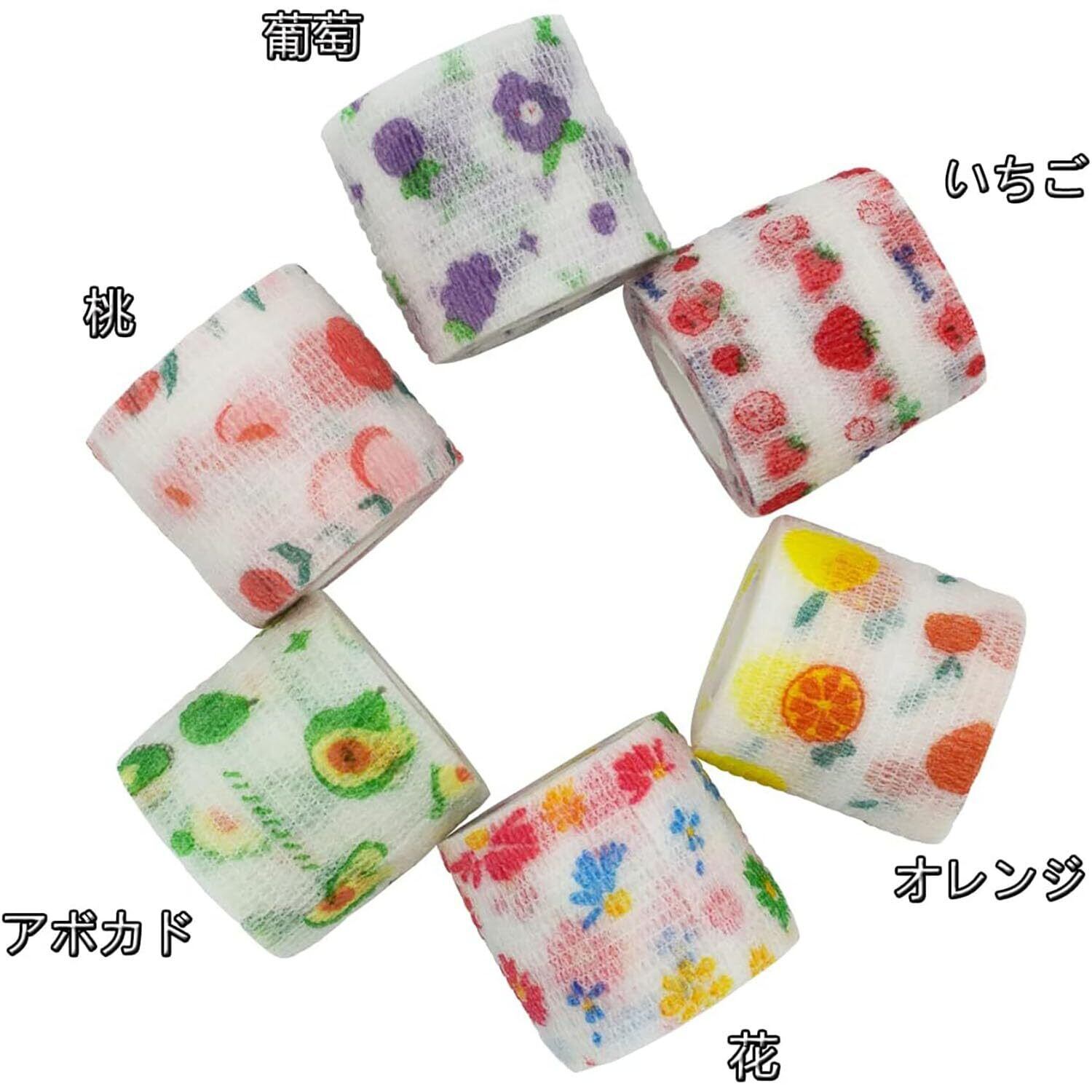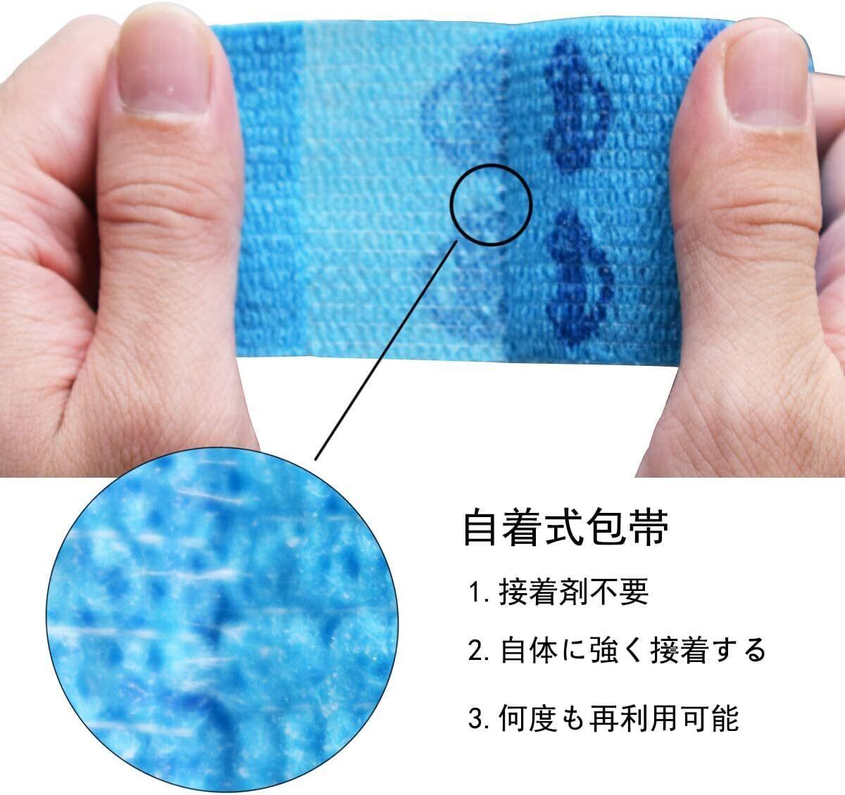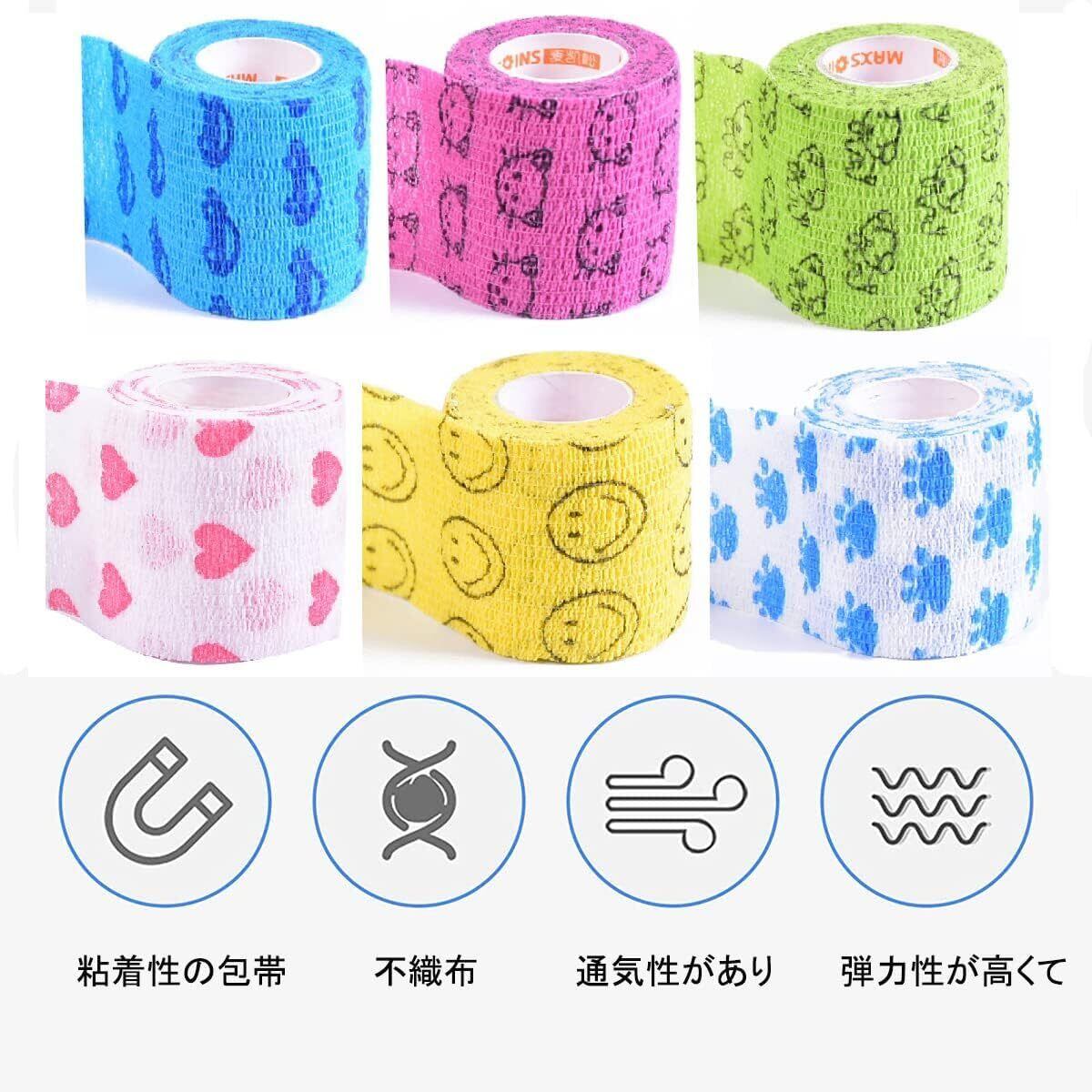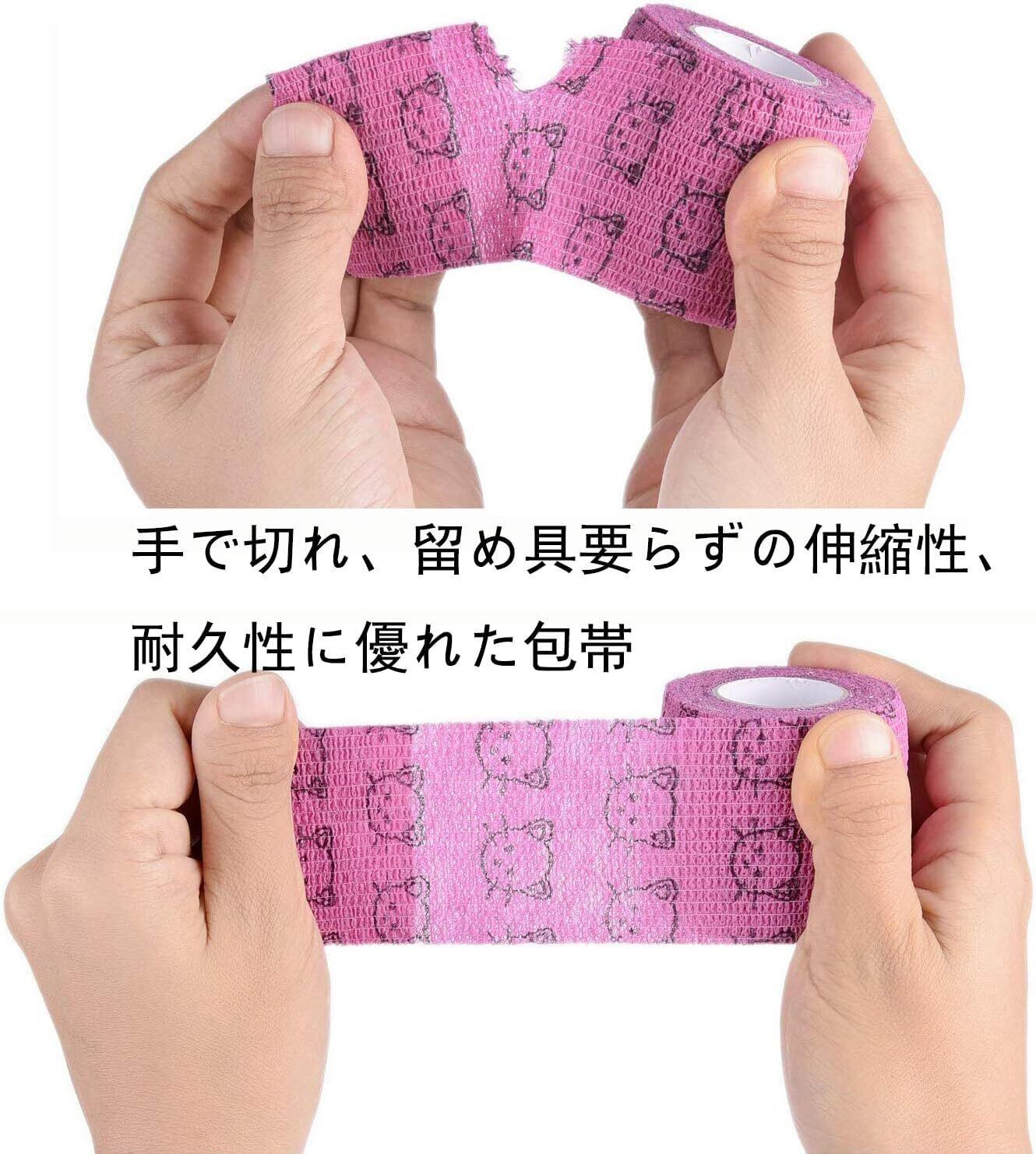 ペット用 自着性伸縮包帯 5cm×4.5m 通気性 防水 テーピングテープ くっつく包帯 弾性 粘着包帯 傷舐め防止 動物用包帯 犬用 猫用 多機能 6色 6個セット