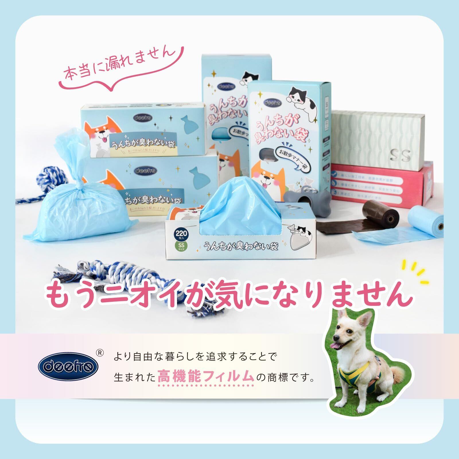 Deefre うんちが臭わない袋 犬うんち処理袋 SSサイズ 220枚×2個 (440枚) におわない袋 防臭袋 防臭ポリ袋 フン処理袋 無香料 お出かけ 車内 猫砂用 厚さ0.02mm 厚くて丈夫 箱入り コンパクト 持ち運び便利 サニタリー袋【袋カラー:ブルー】