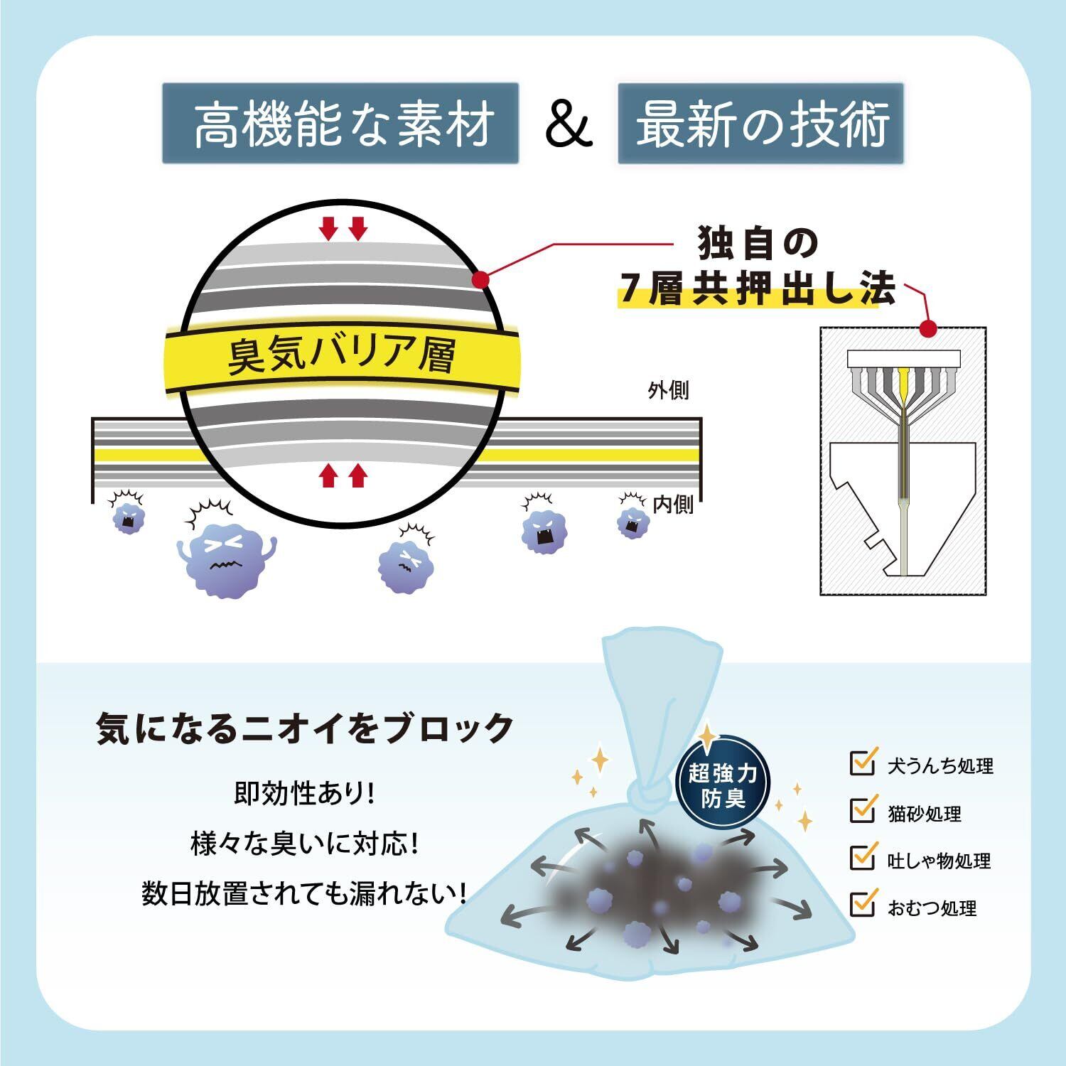 【ニオイ対策】7層の素材に特殊な脱臭フィルムが付加されています。無臭と感じる臭気濃度まで防臭できて、周囲の人をニオイで不快にさせる心配がないのでお勧めです。